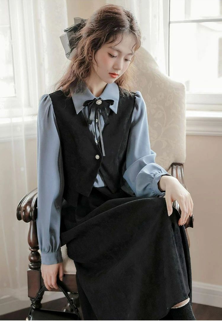 シアースリーブ ドッキングシャツ ボウタイシャツブラウス