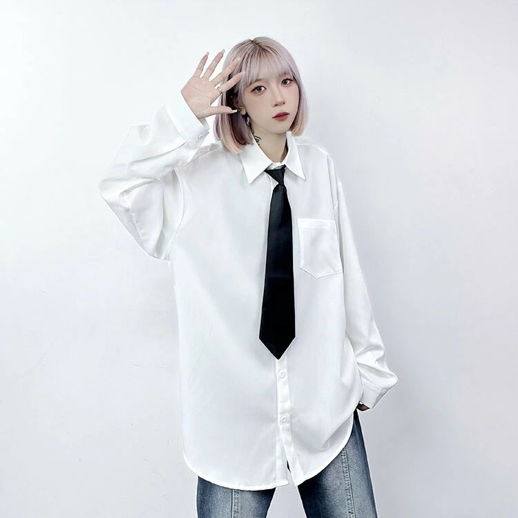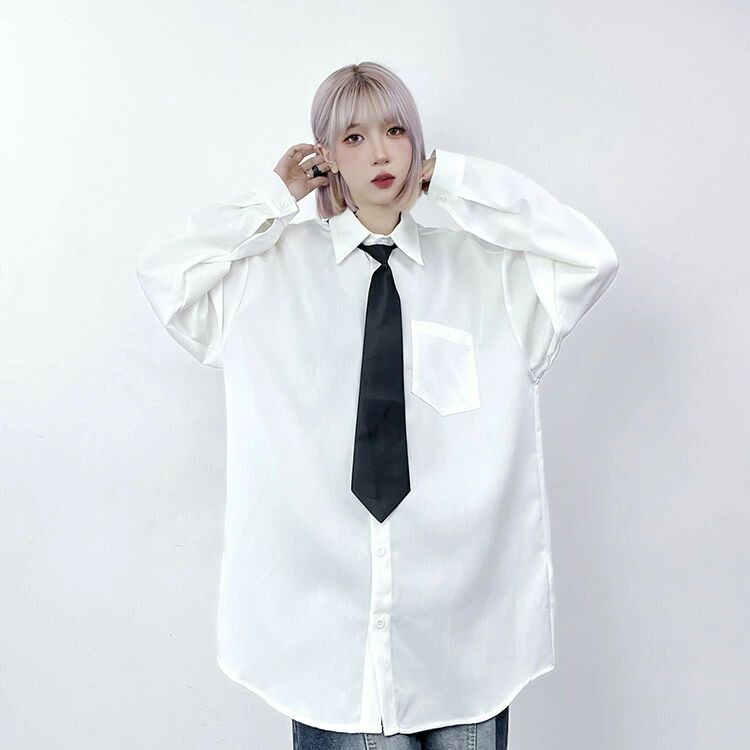 ダンス衣装 k-pop衣装 レーディス 白シャツ ネクタイ付き ユーニセックス メンズ へそ出し トップス シャツ へそ出し 長袖 ヒップホップ 卒業式 シャツ ネクタイ 大きいサイズ ダンス