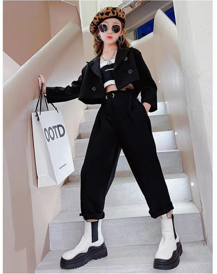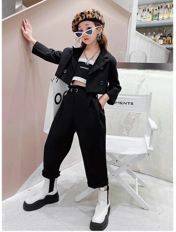 キッズダンス衣装 セットアップ ブレザー 長ズボン パンツスーツ 卒業式 スーツ 女の子 上下セット 入学式 ジャケット フォーマル ガールズ ジャズダンス ヒップホップ チアダンス hi