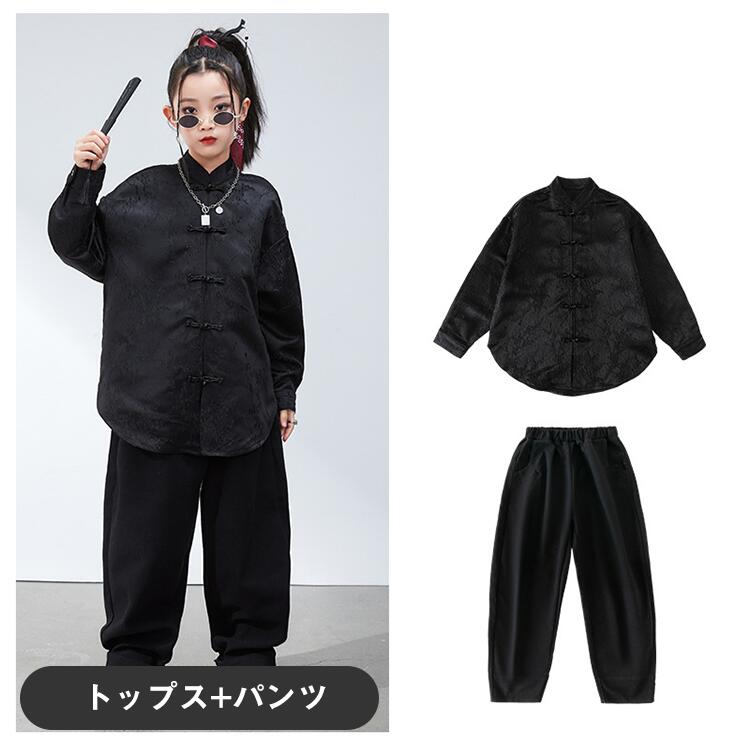 黒 チャイナ風 キッズ ダンス衣装 セ
