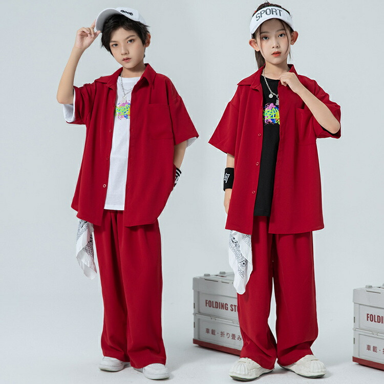 赤 キッズ ダンス衣装 セットアップ