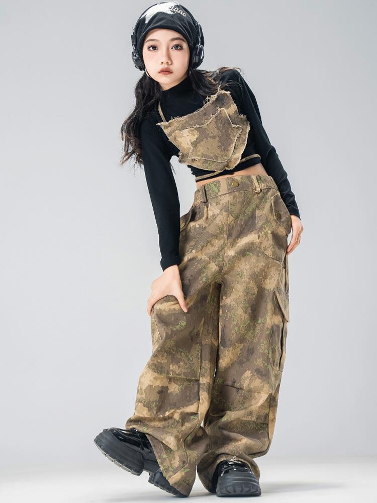 カーキグリーン 黒 白 キッズ ダンス