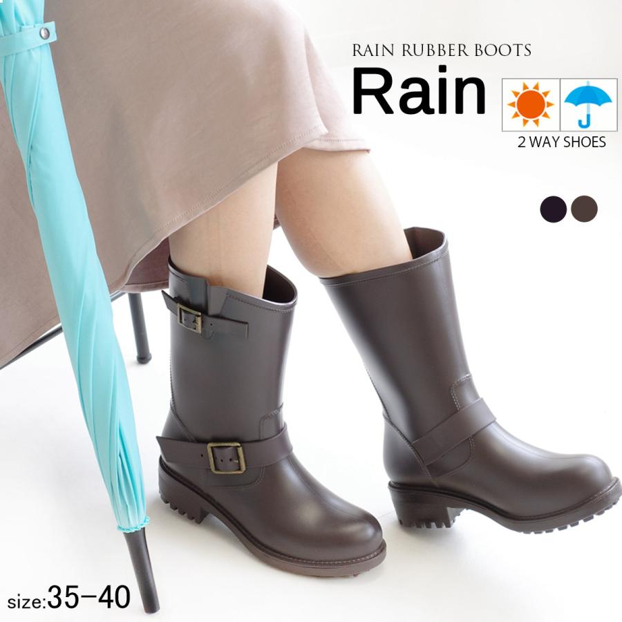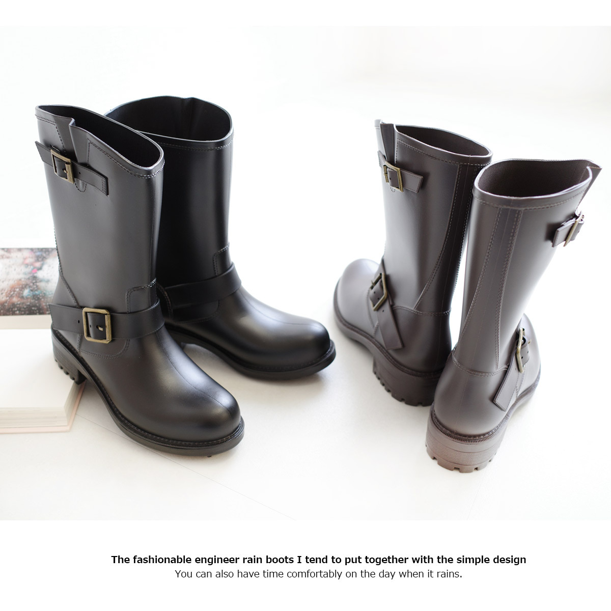 レインに見えないエンジニアブーツ!クールなデザインで雨の日も晴れの日もオシャレ度UP!安定感のある4cmヒール!完全防水・防滑底!