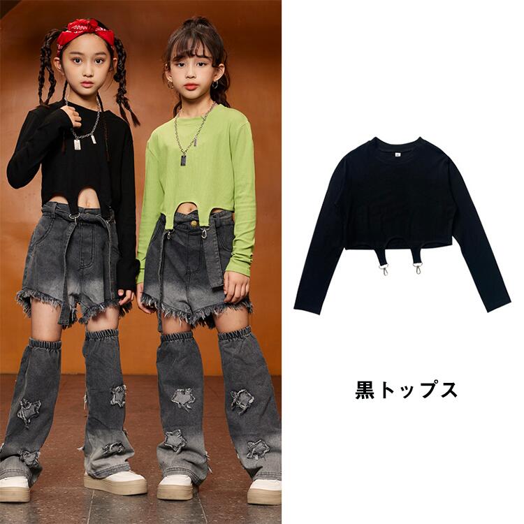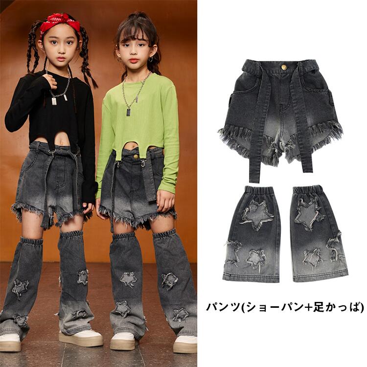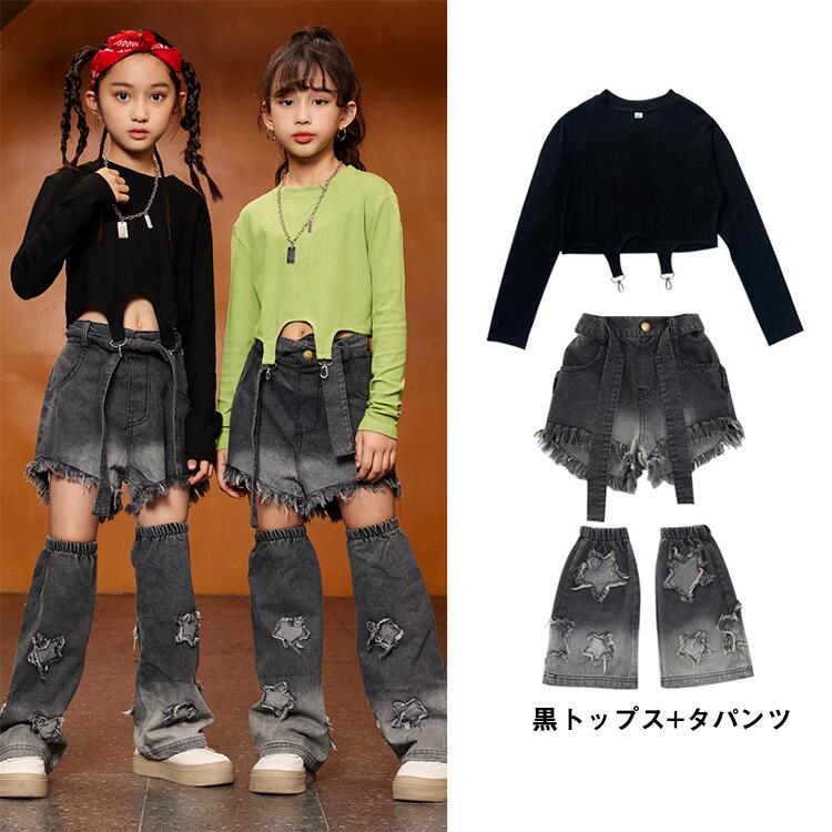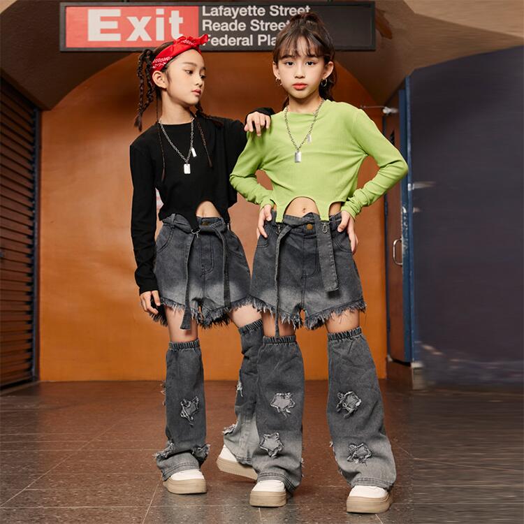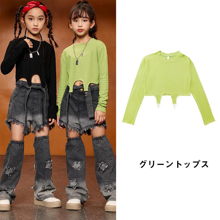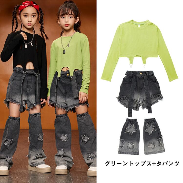 緑 黒 デニム パンツキッズ ダンス衣