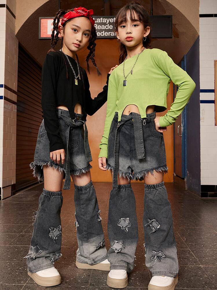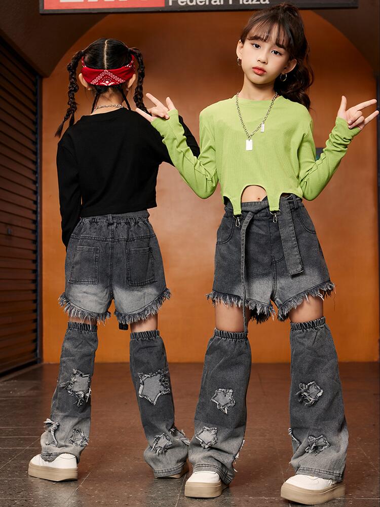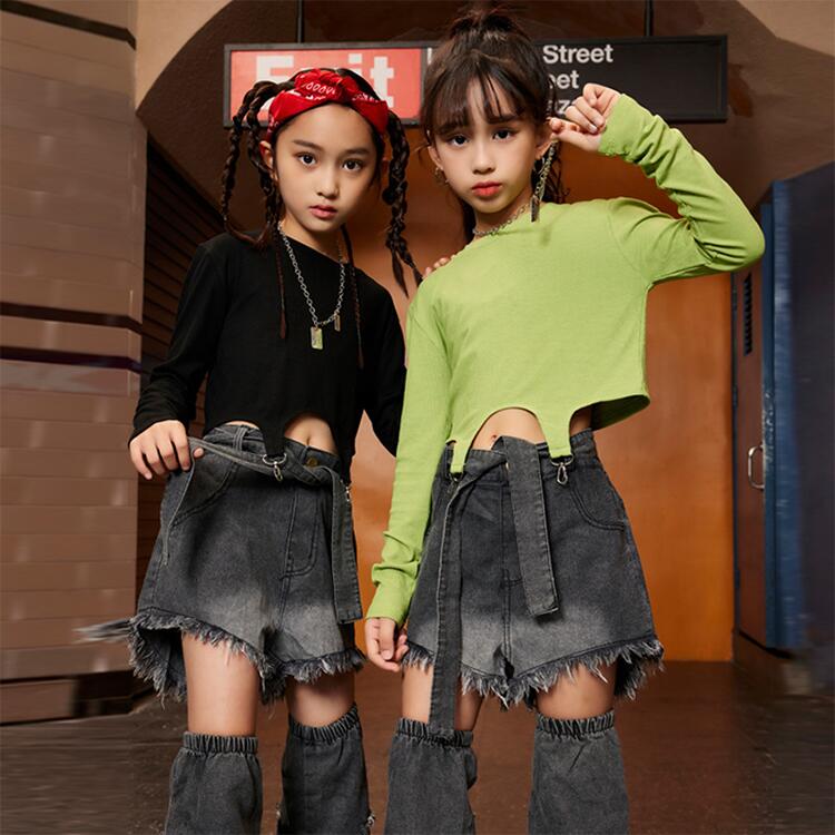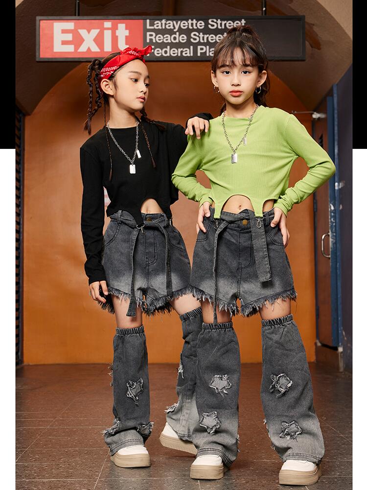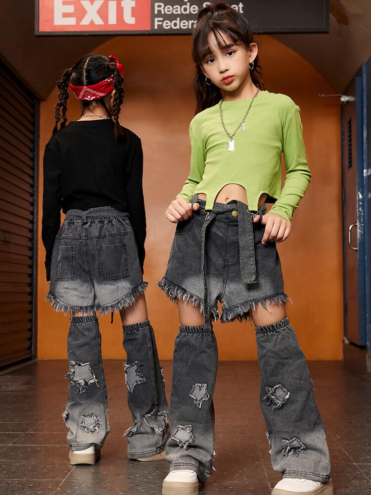 緑 黒 デニム パンツキッズ ダンス衣