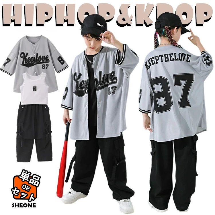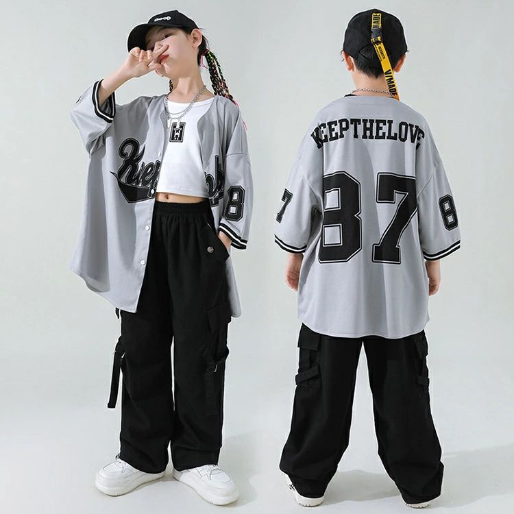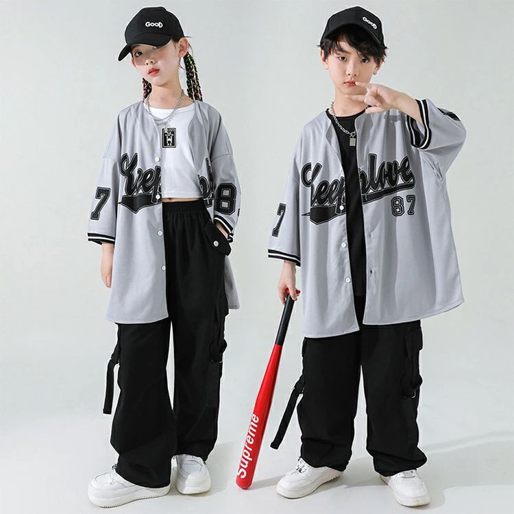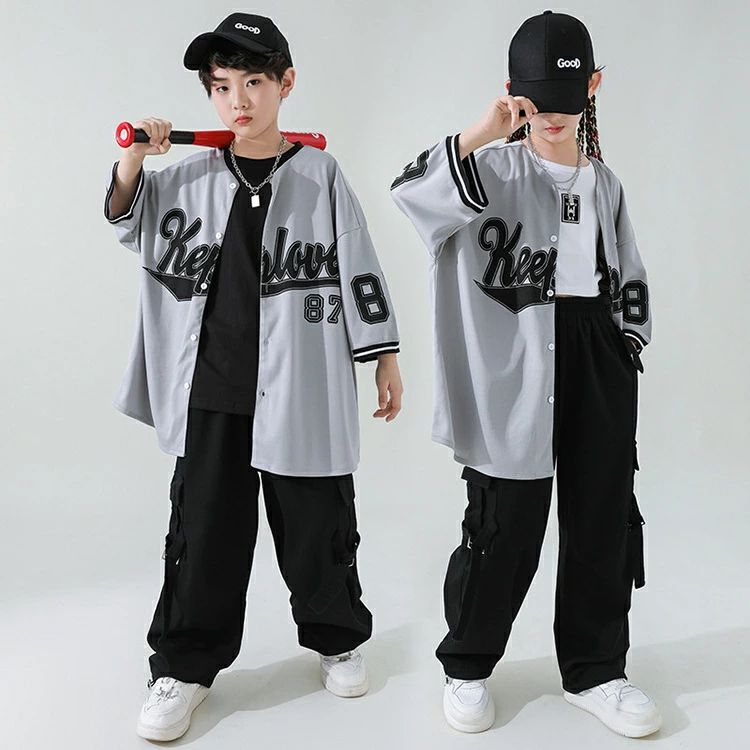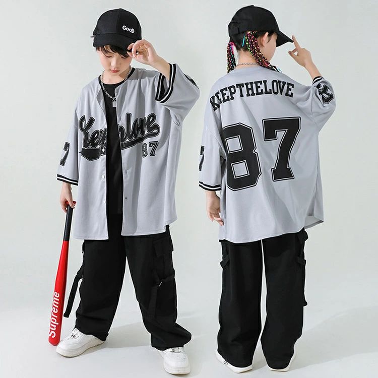 ベースボールシャツ 灰色 キッズ ダン