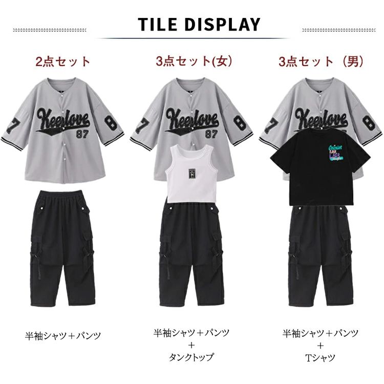 商品内容: 2点セット 3点セット(女) 3点セット(男) 半袖シャツ パンツ タンクトップ
