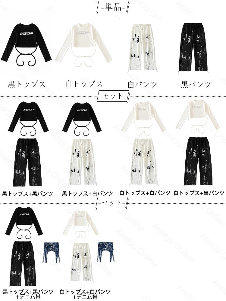 商品内容: 黒トップスのみ 白トップスのみ 黒パンツのみ 白パンツのみ 黒トップス+黒パンツ 白トップス+黒パンツ 白トップス+白パンツ 黒トップス+白パンツ 白トップス+白パンツ+デニム帯 黒トップス+黒パンツ+デニム帯