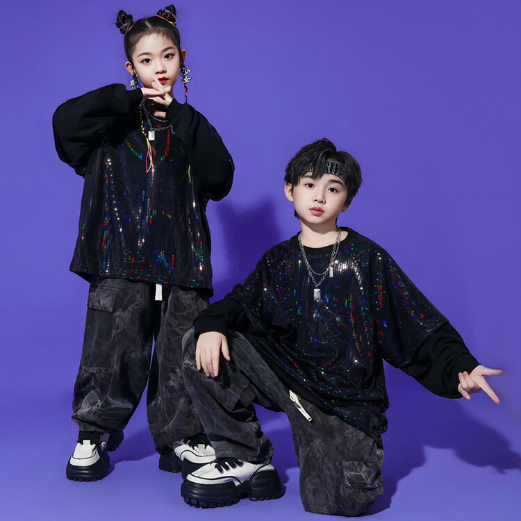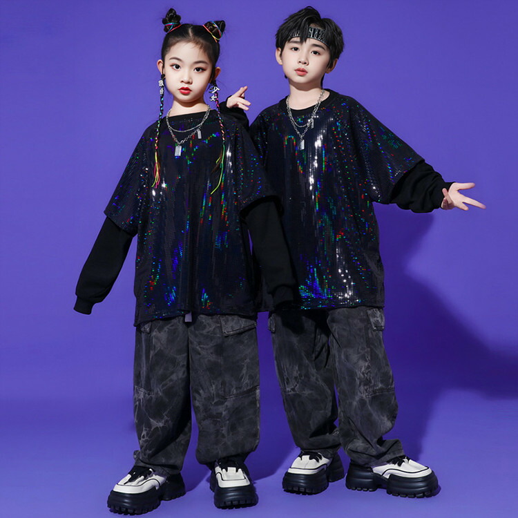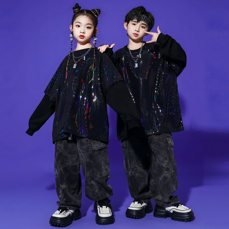 黒 キッズ ダンス 衣装 スパンコール
