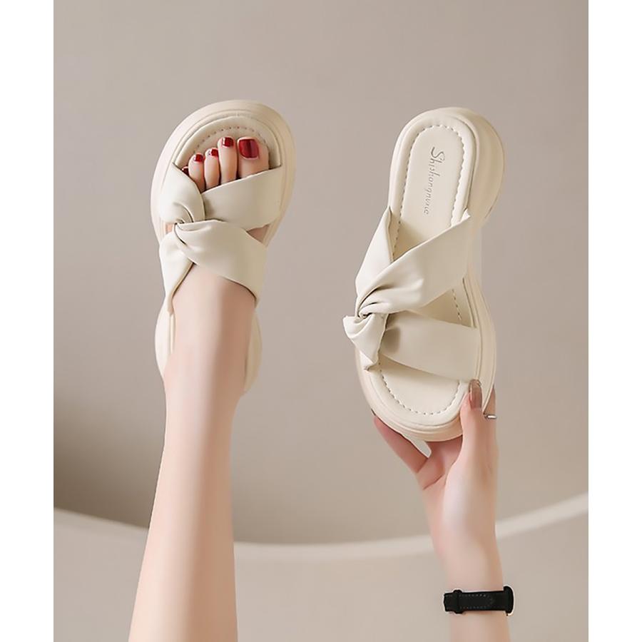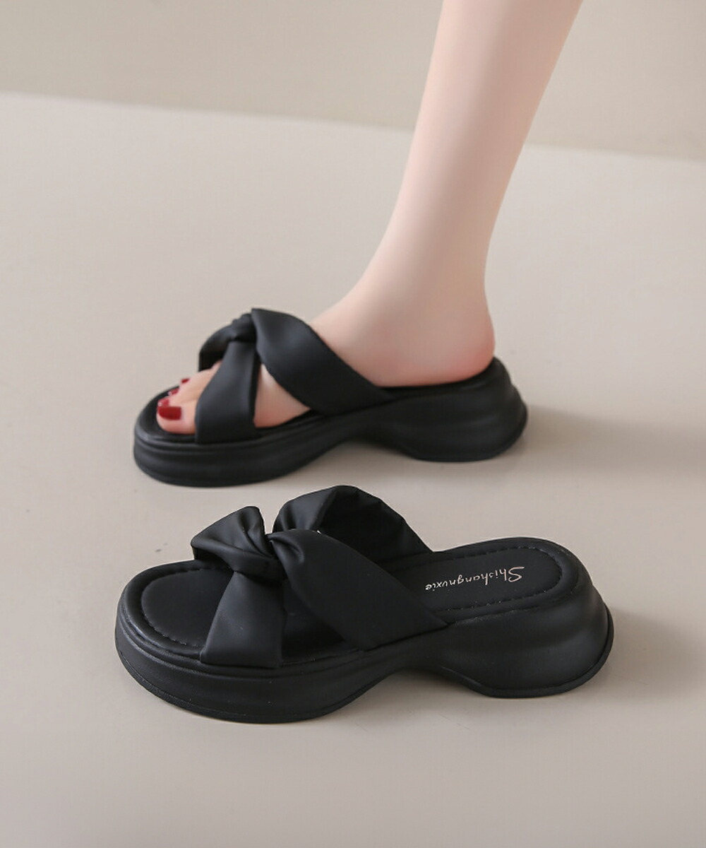 夏のコーディネートに程よいボリューム感をプラスしてくれる厚底クロスベルトサンダル。