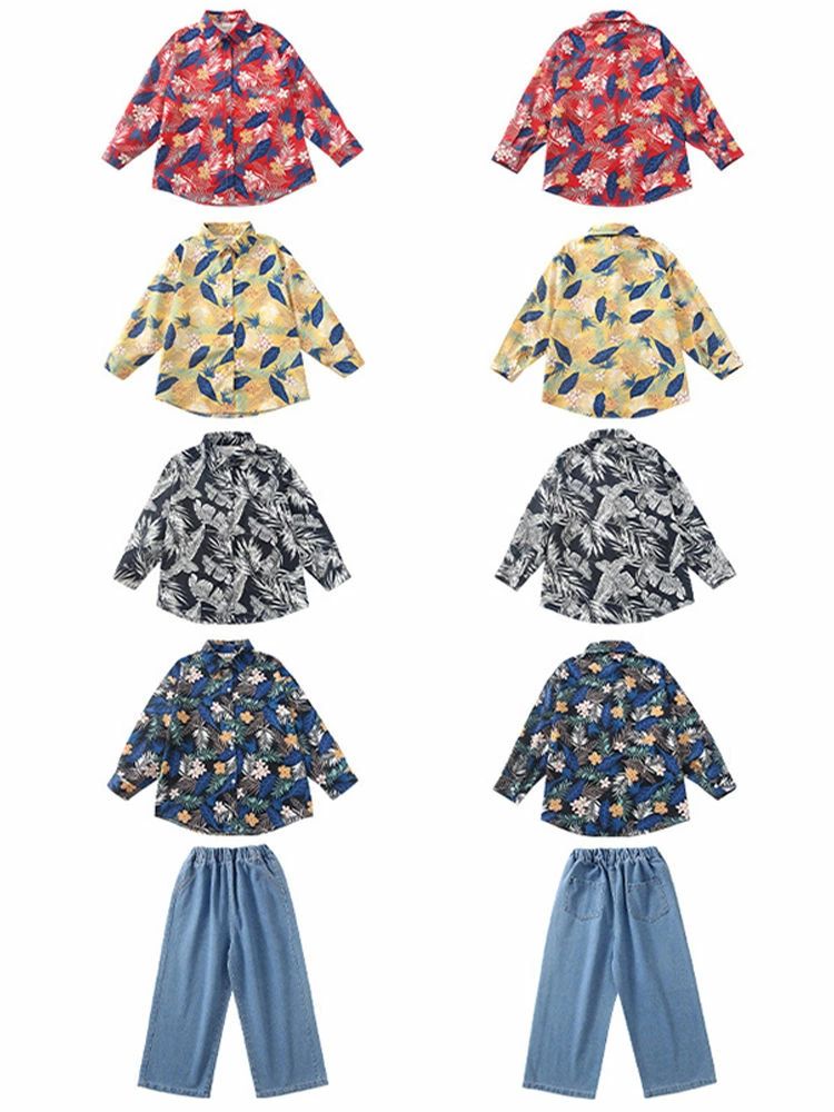 柄シャツ 黄色 黒 総柄シャツ 花柄シ