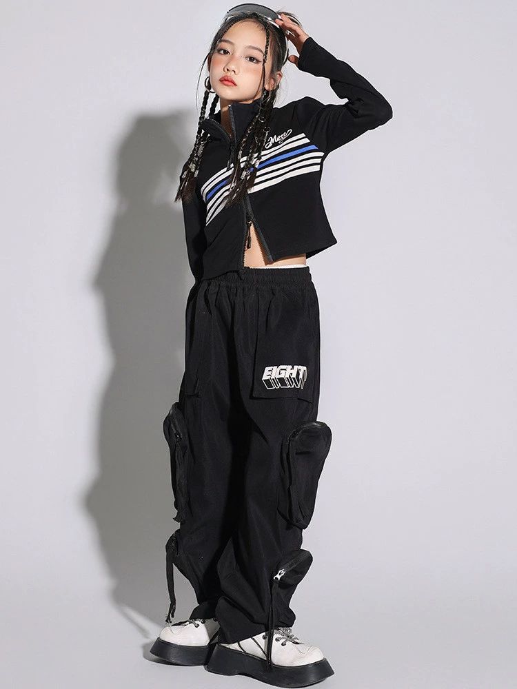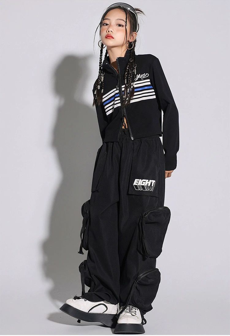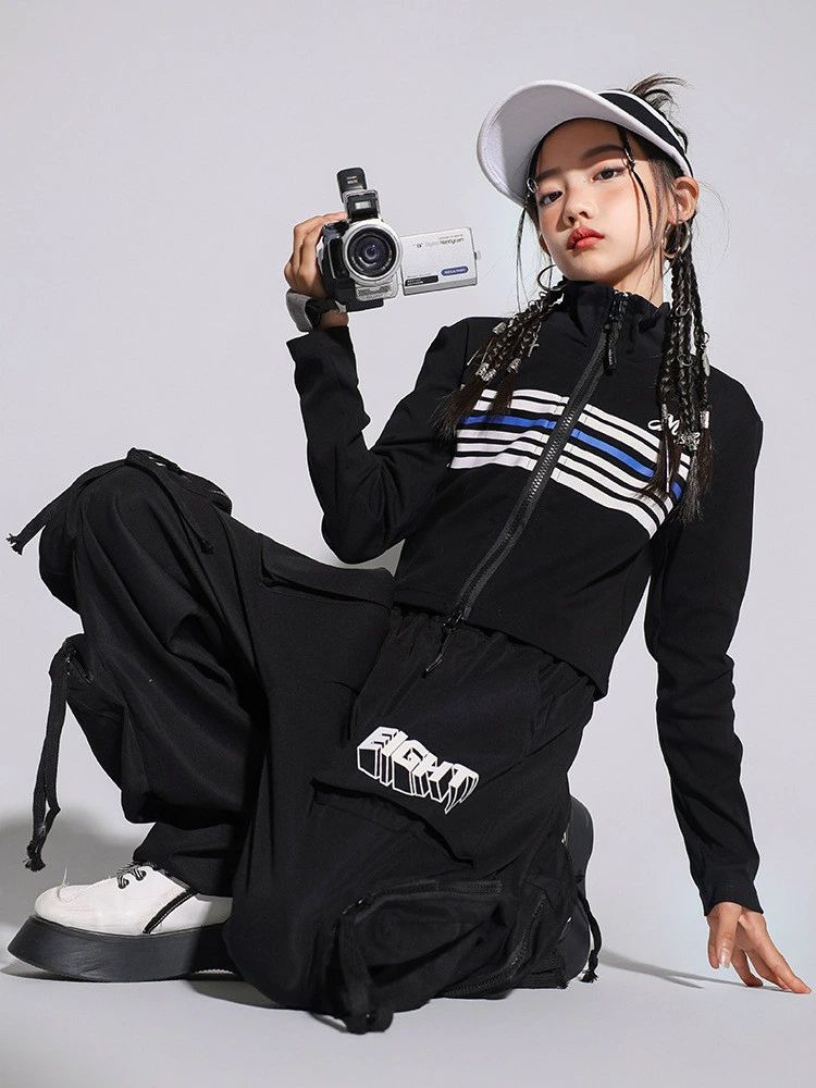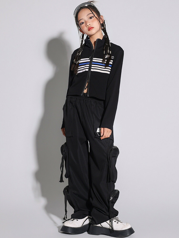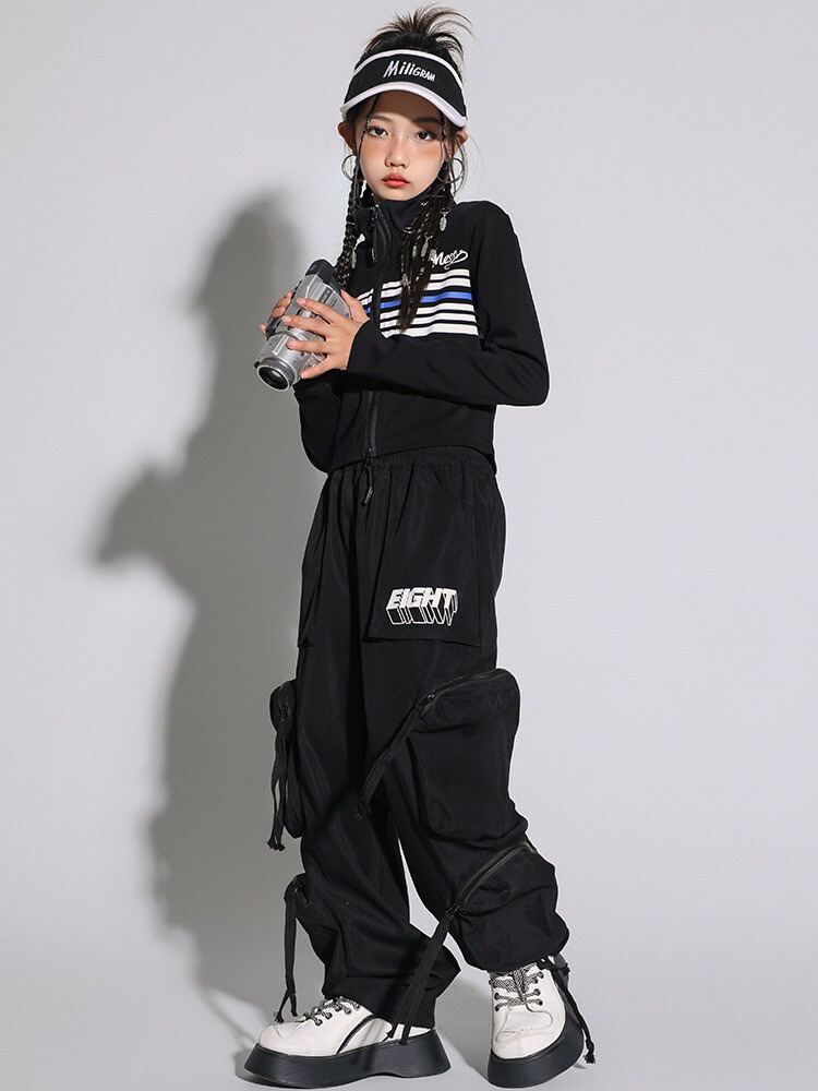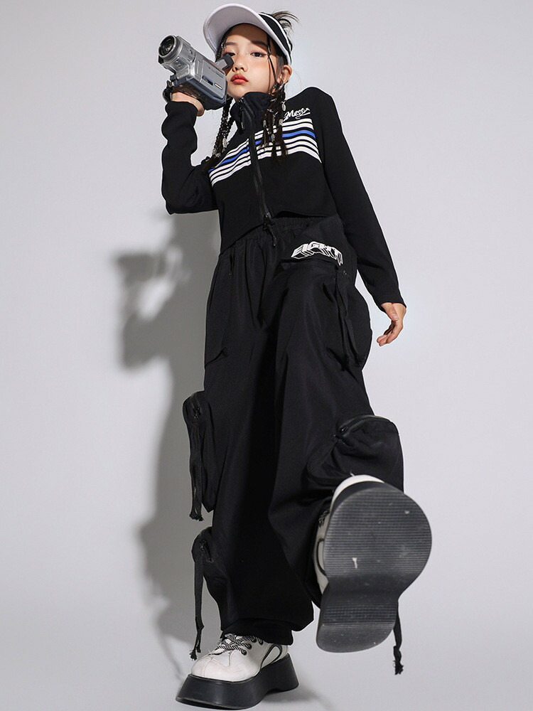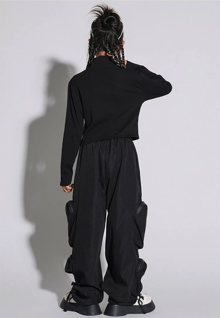 へそ出し 黒 カーゴパンツ キッズ ダ