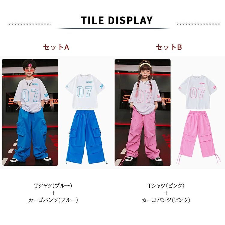 商品内容: セットA セットB カーゴパンツ(ブルー) カーゴパンツ(ピンク) Tシャツ(ブルー) Tシャツ(ピンク)