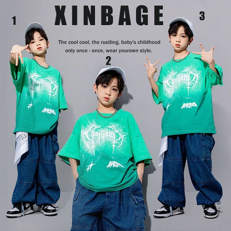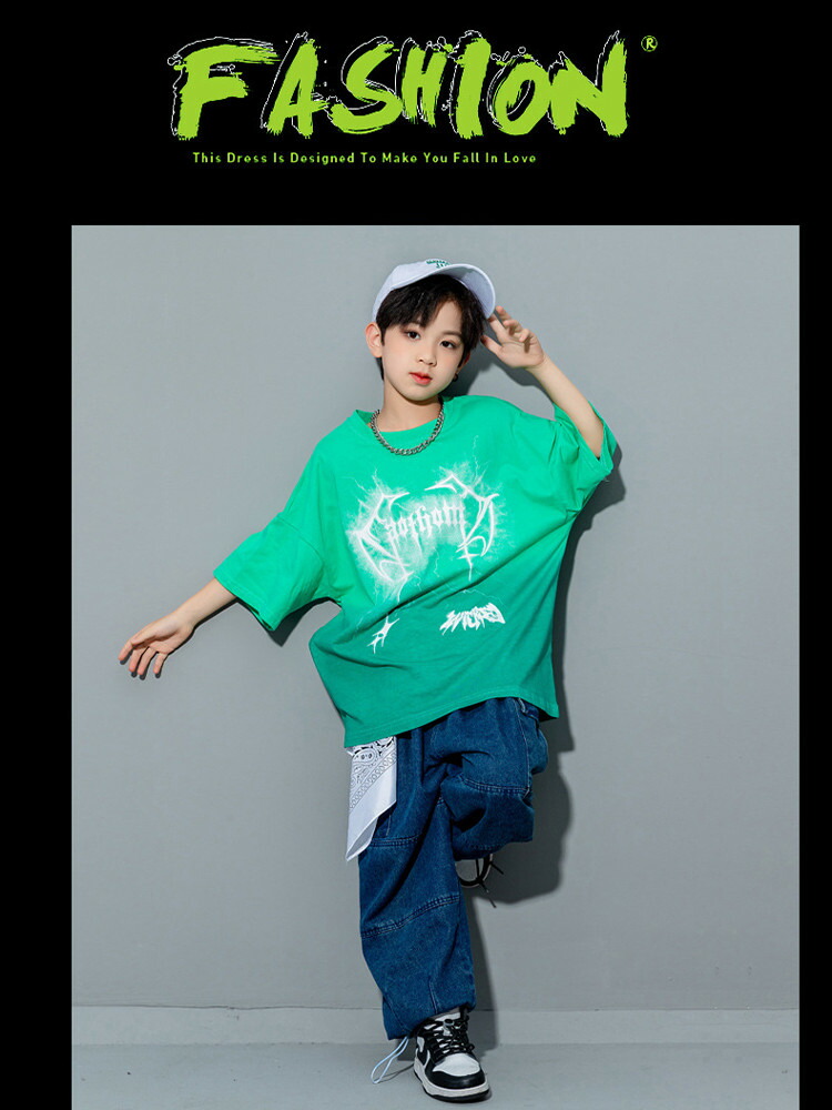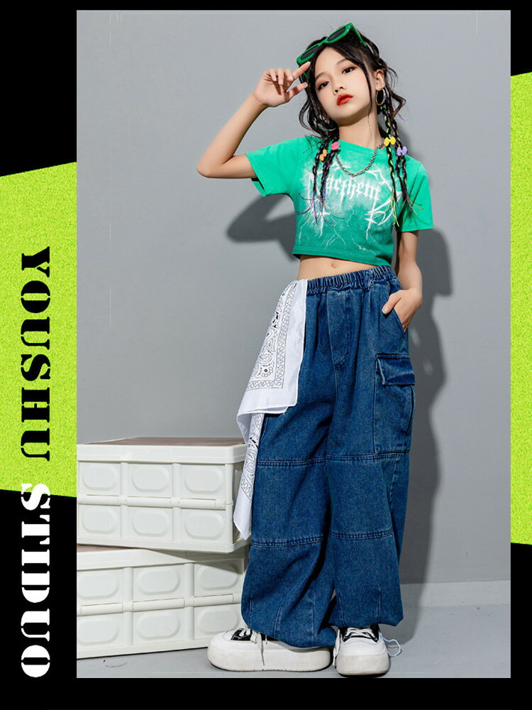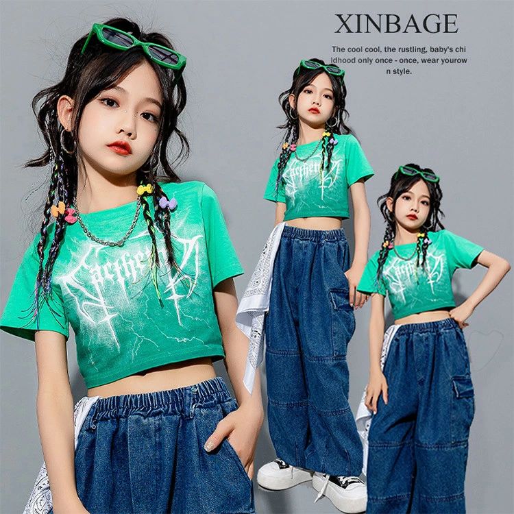 グリーン 半袖 キッズ ダンス衣装 お