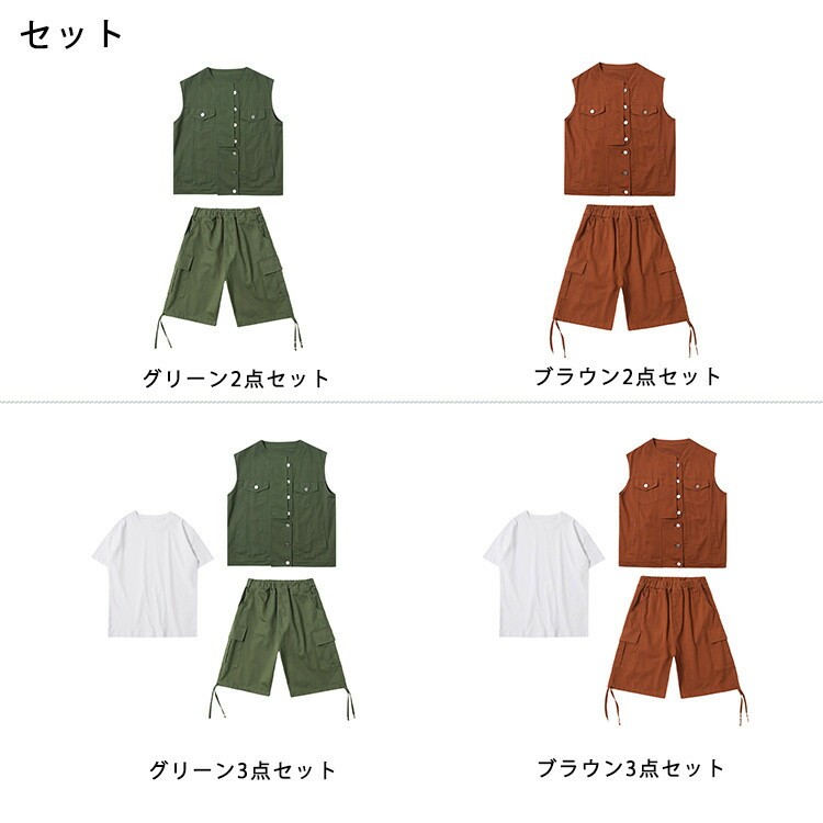 ベスト 緑 ブラウン 半袖 夏 キッズ