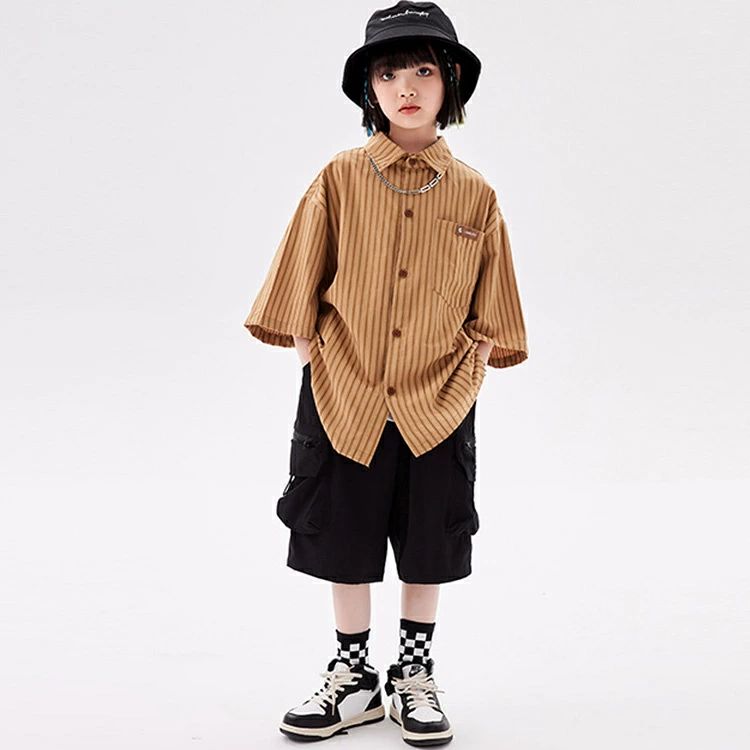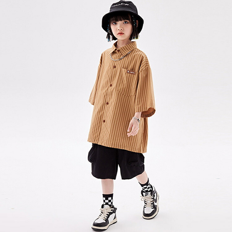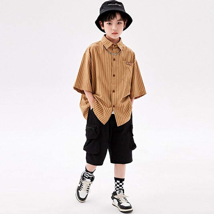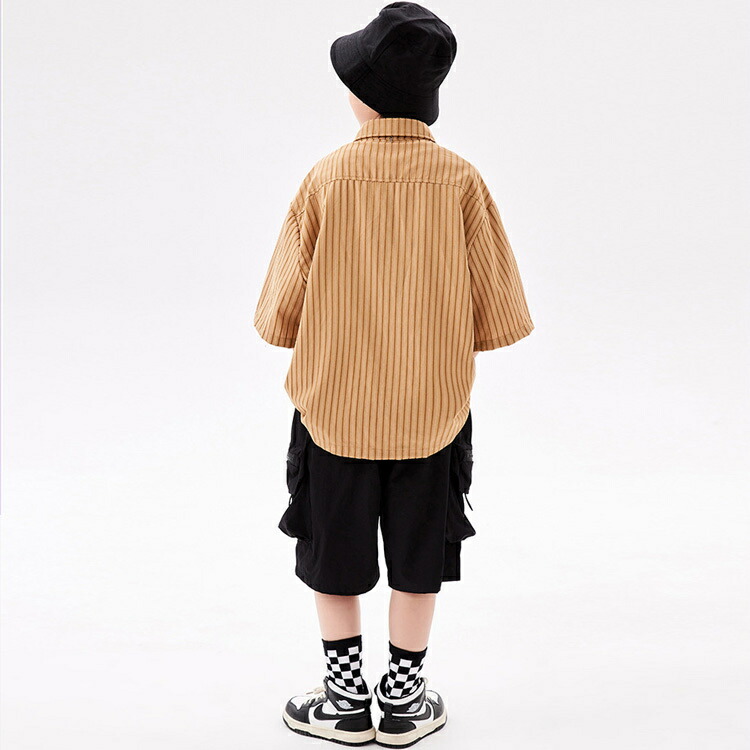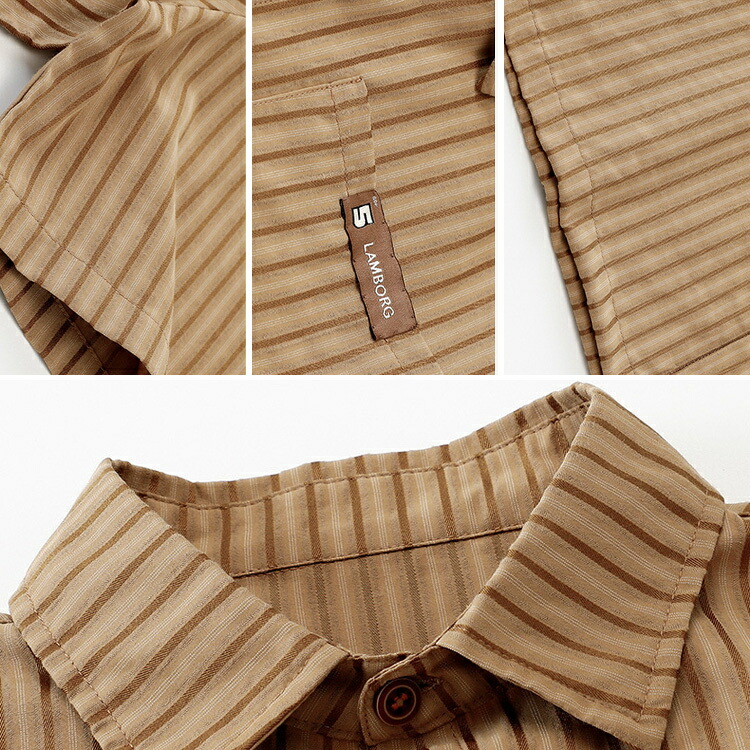 ストライプシャツ 半袖シャツ ブラウン