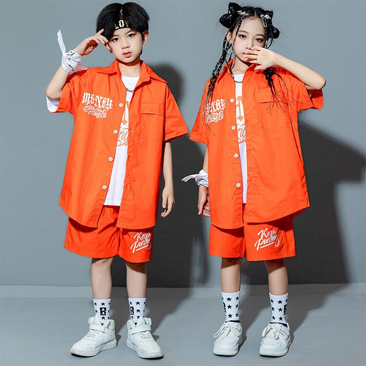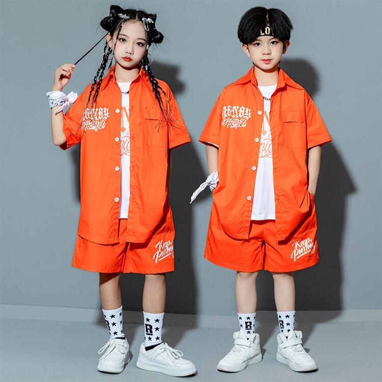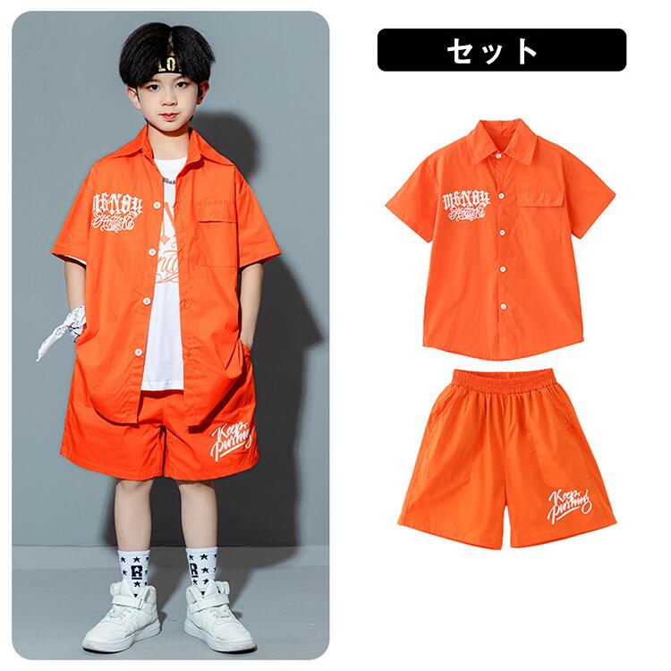 オレンジ T-シャツ 短パン ロンパン