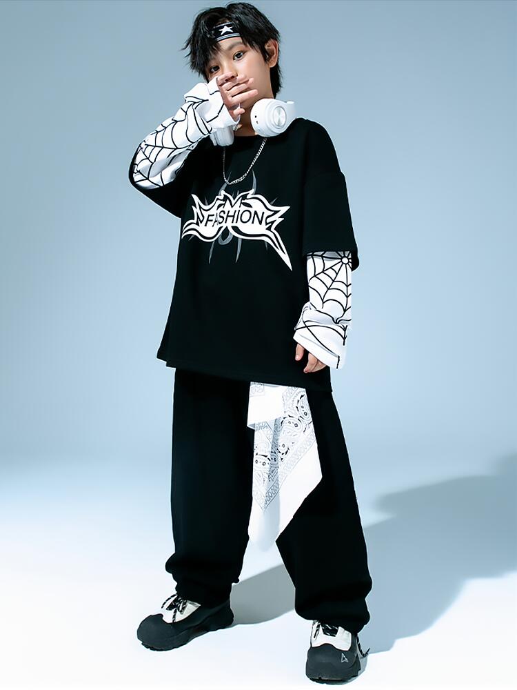 黒白 トップスくもの巣柄 ジャケット