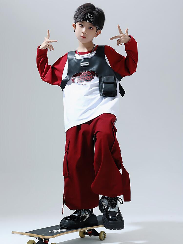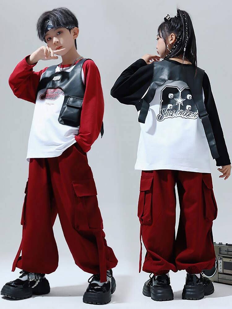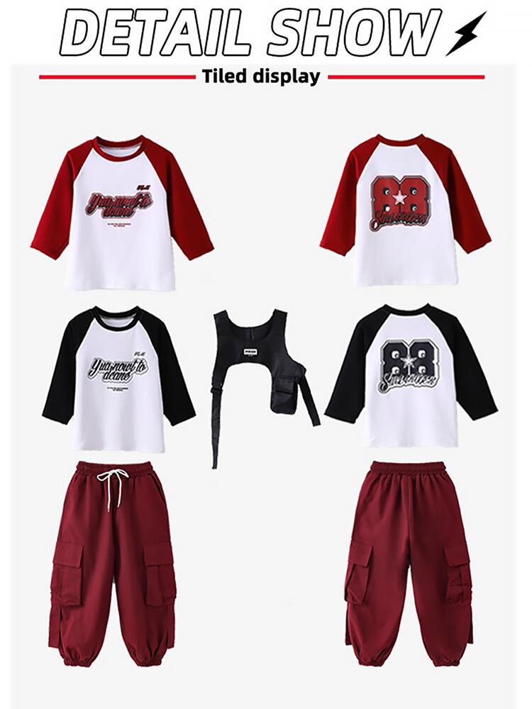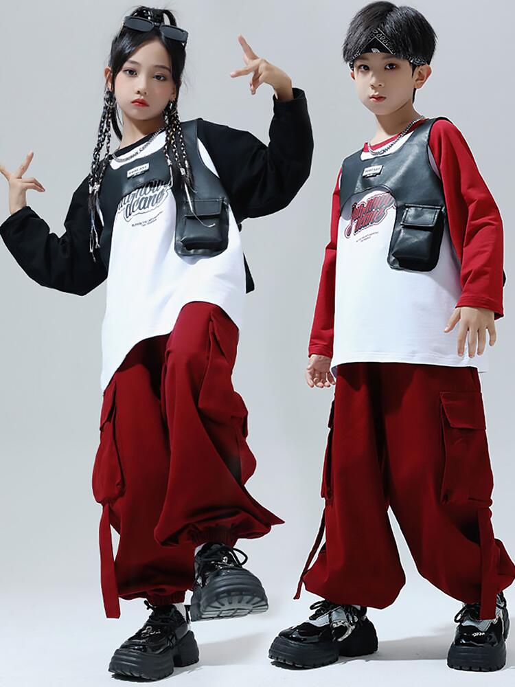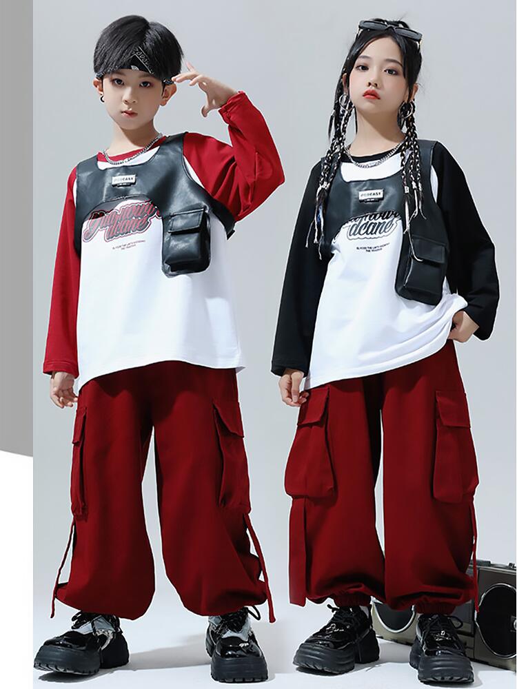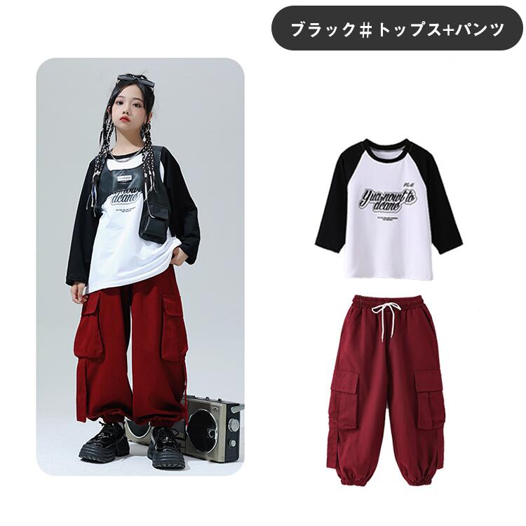 黒色 レッド キッズ ダンス衣装 セッ