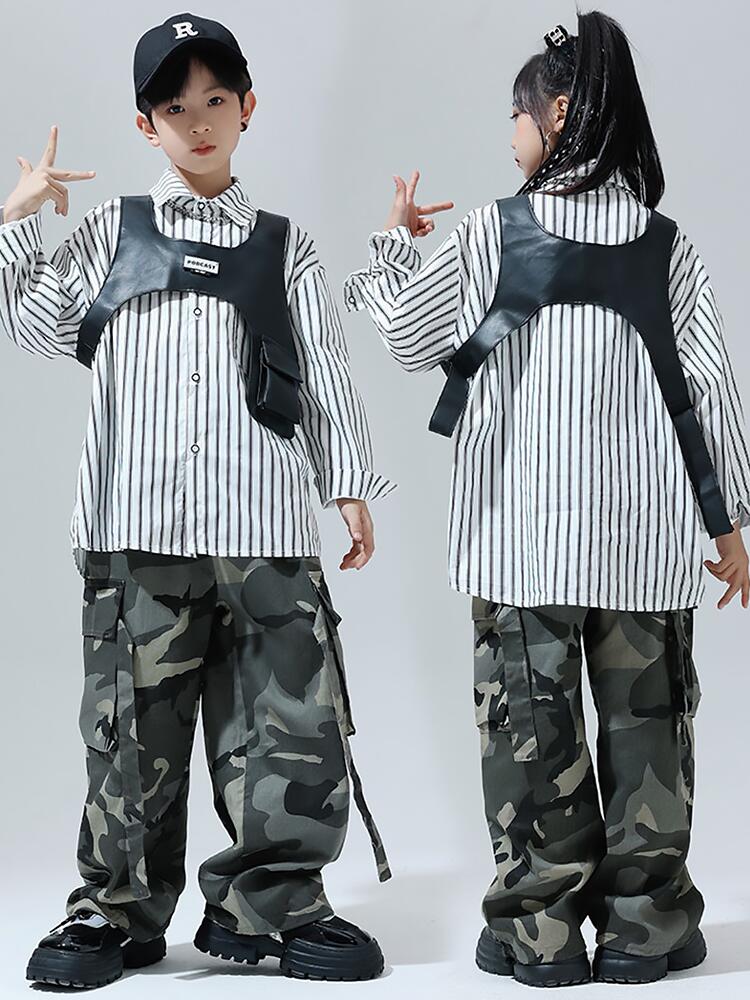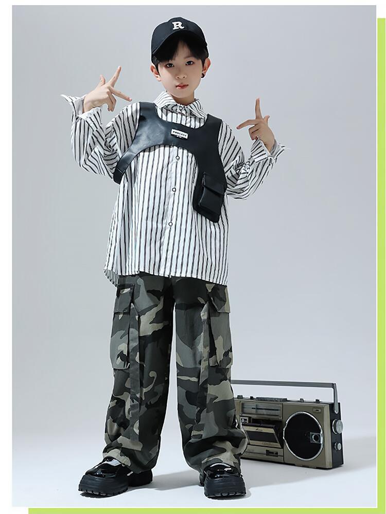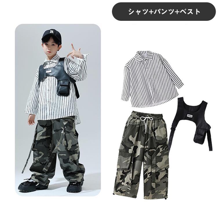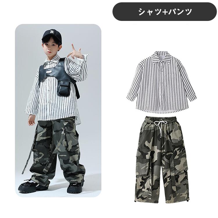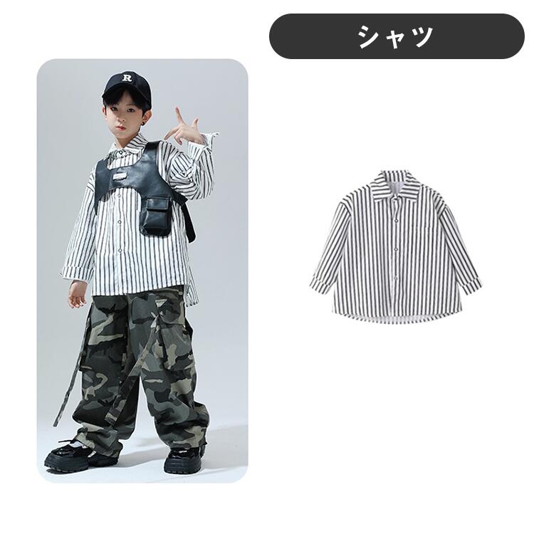 黒色 迷彩ストライプシャツ キッズ ダ