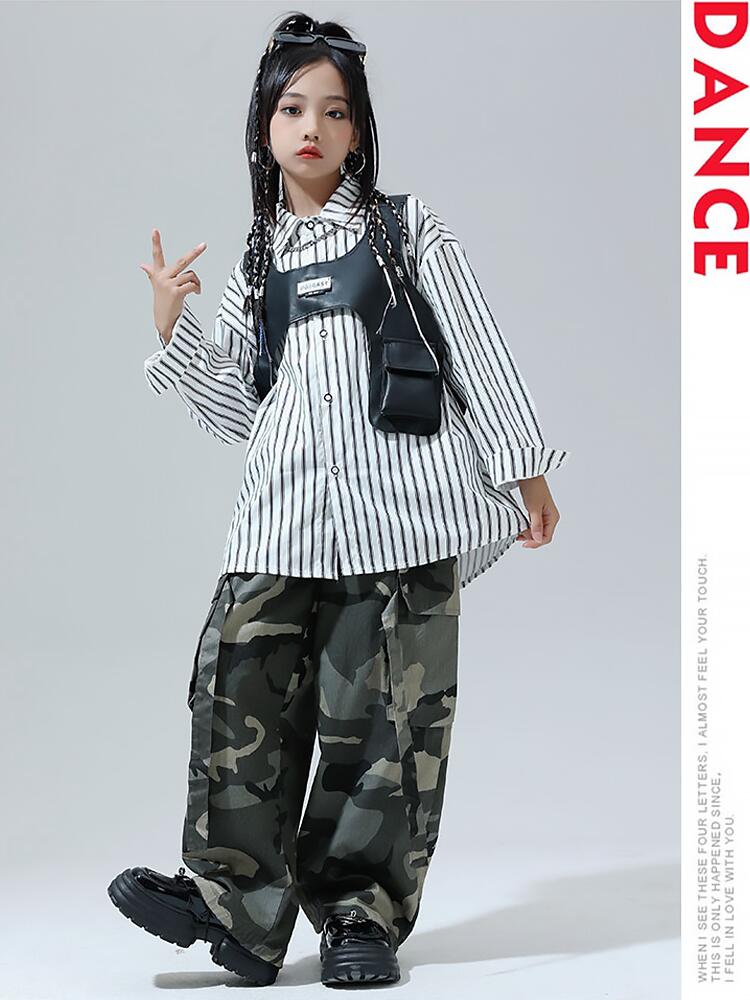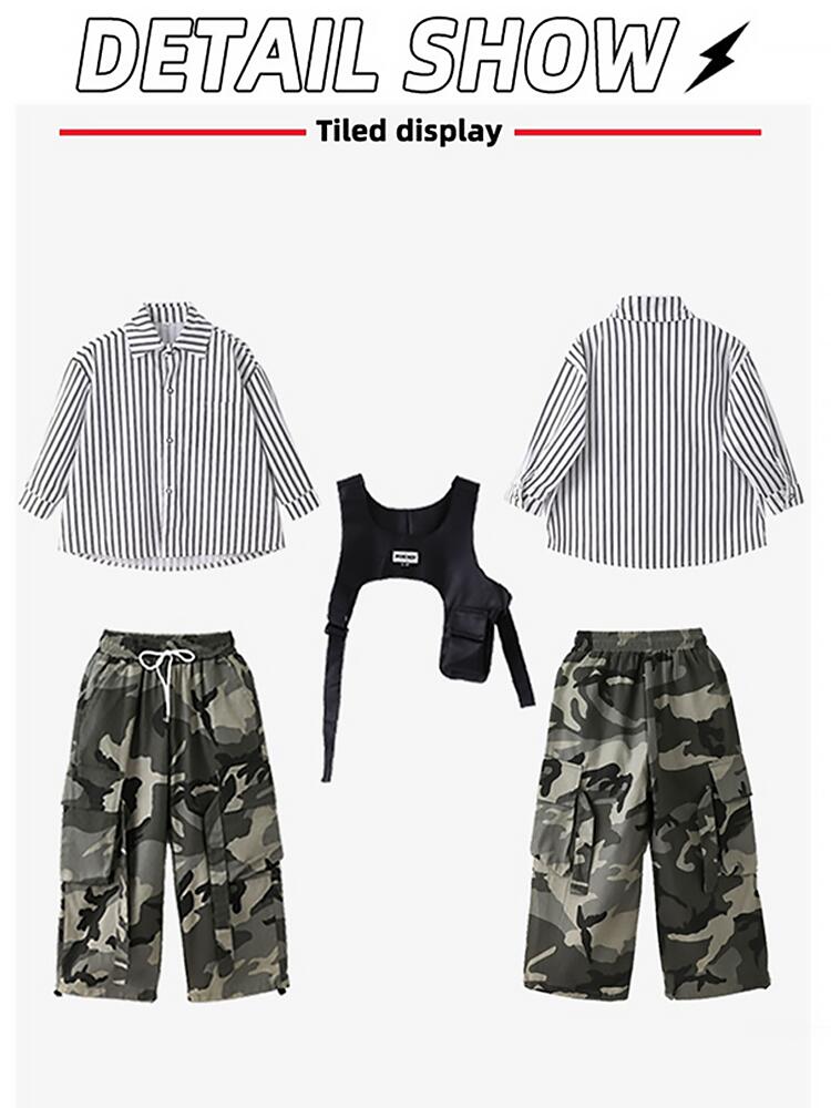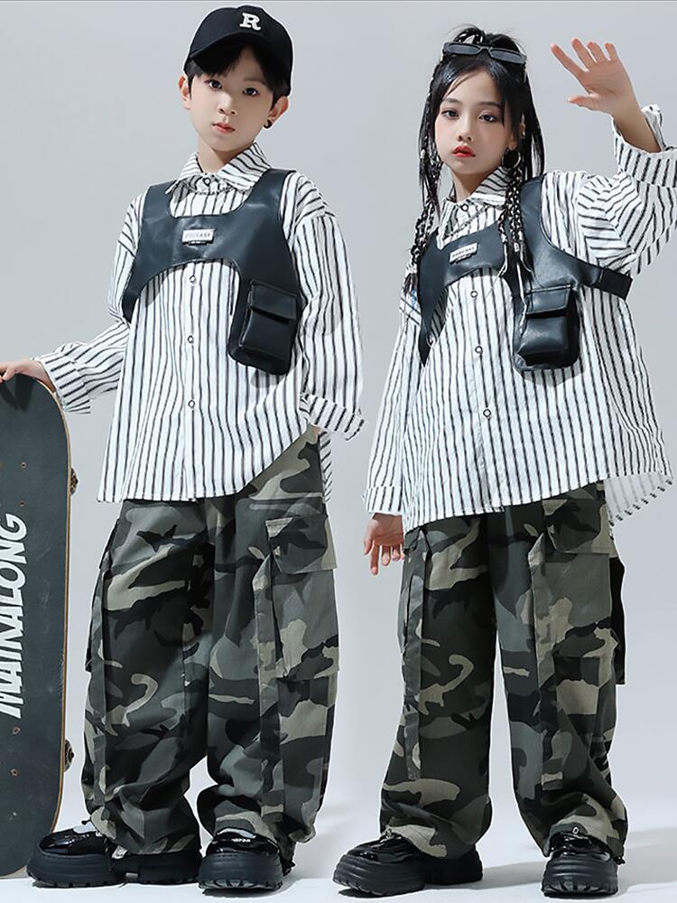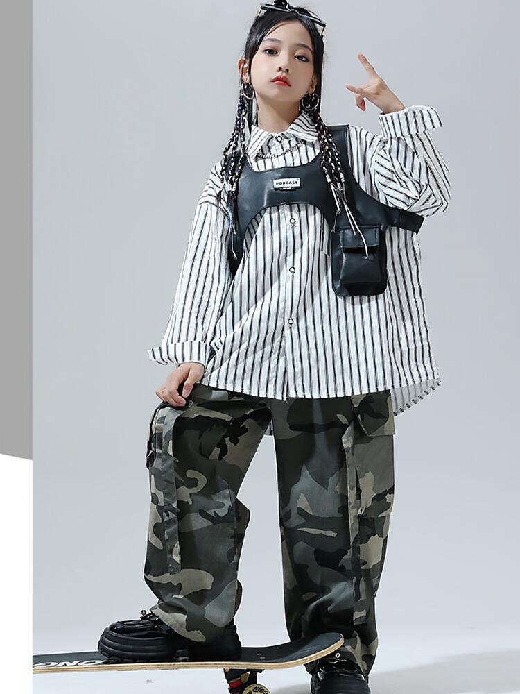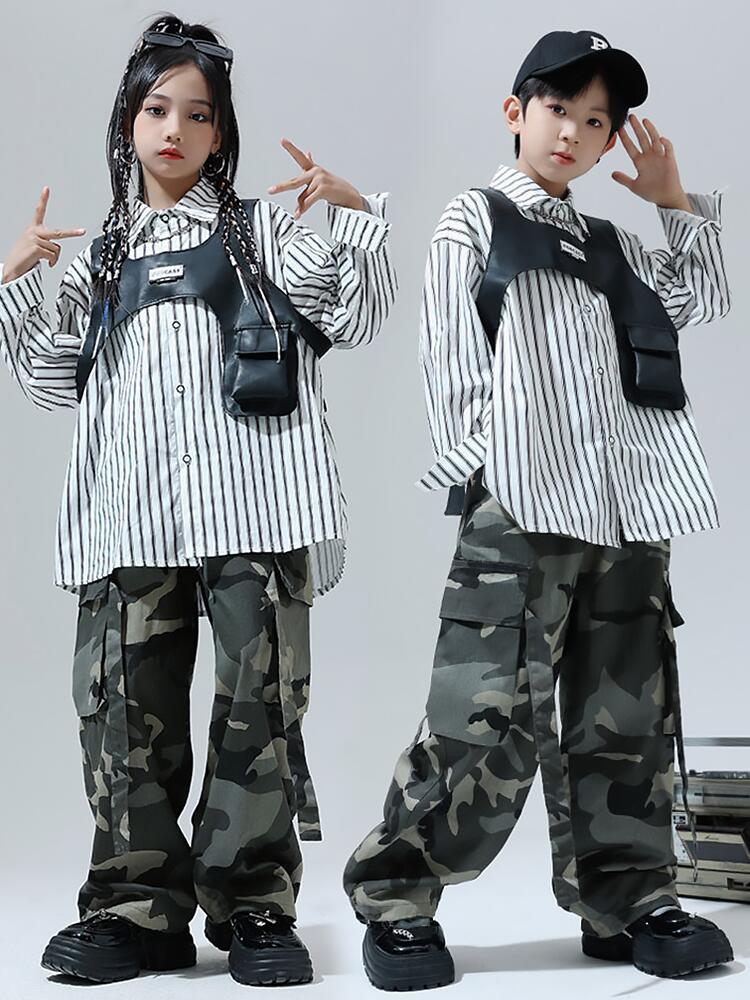 黒色 迷彩ストライプシャツ キッズ ダ