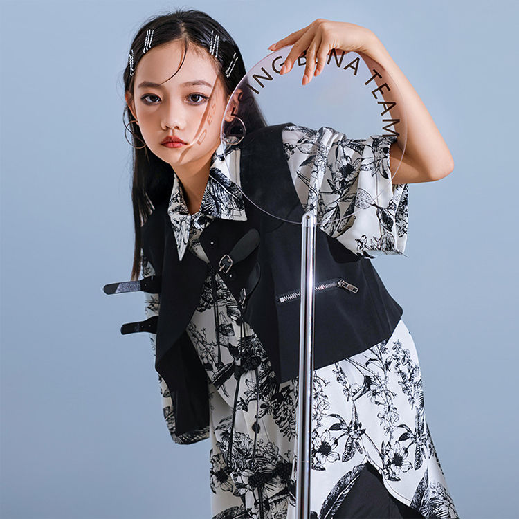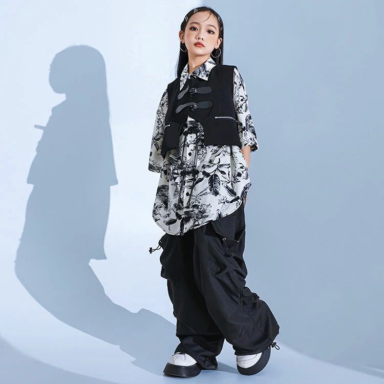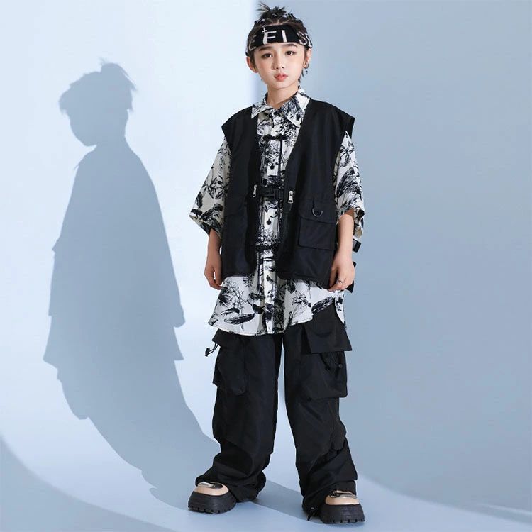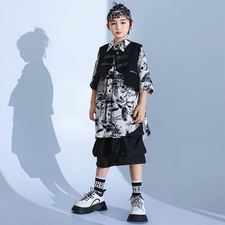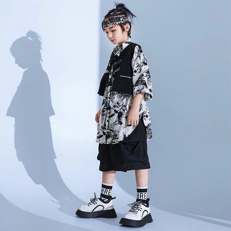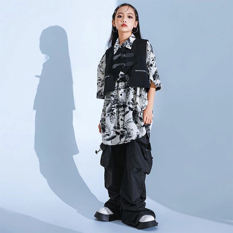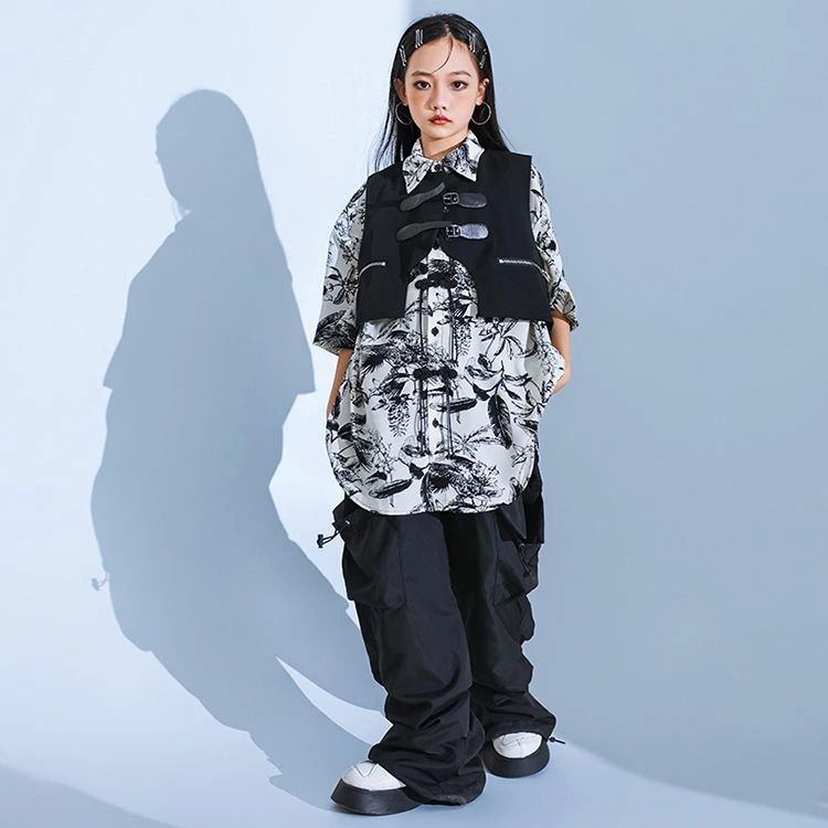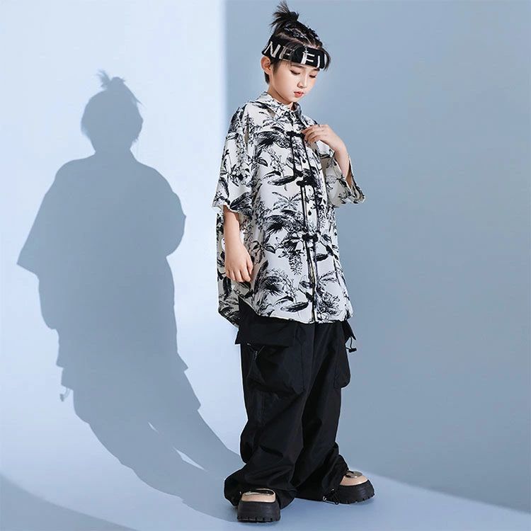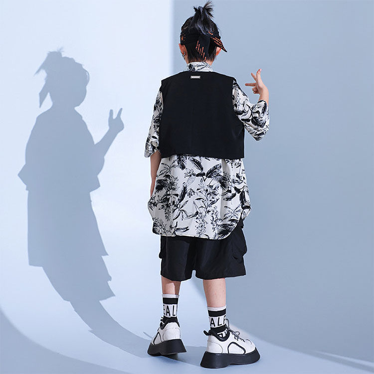 暗闇系 黒 白 柄シャツ 総柄 キッズ