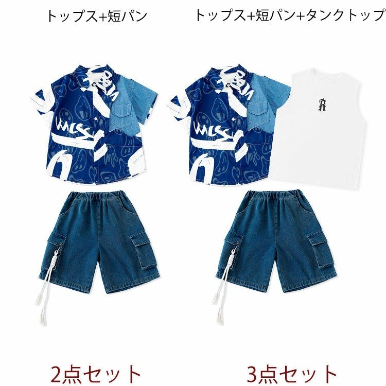 商品内容: 白ベストのみ ブルートップスのみ デニム短パンのみ トップス+短パン 3点セット