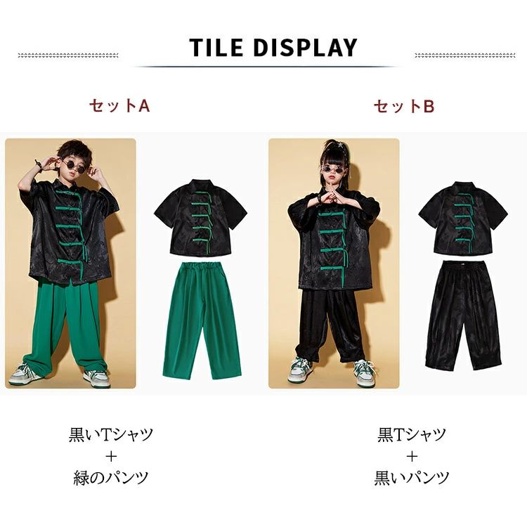 商品内容: 黒いTシャツ 緑のパンツ 黒いパンツ セットA セットB