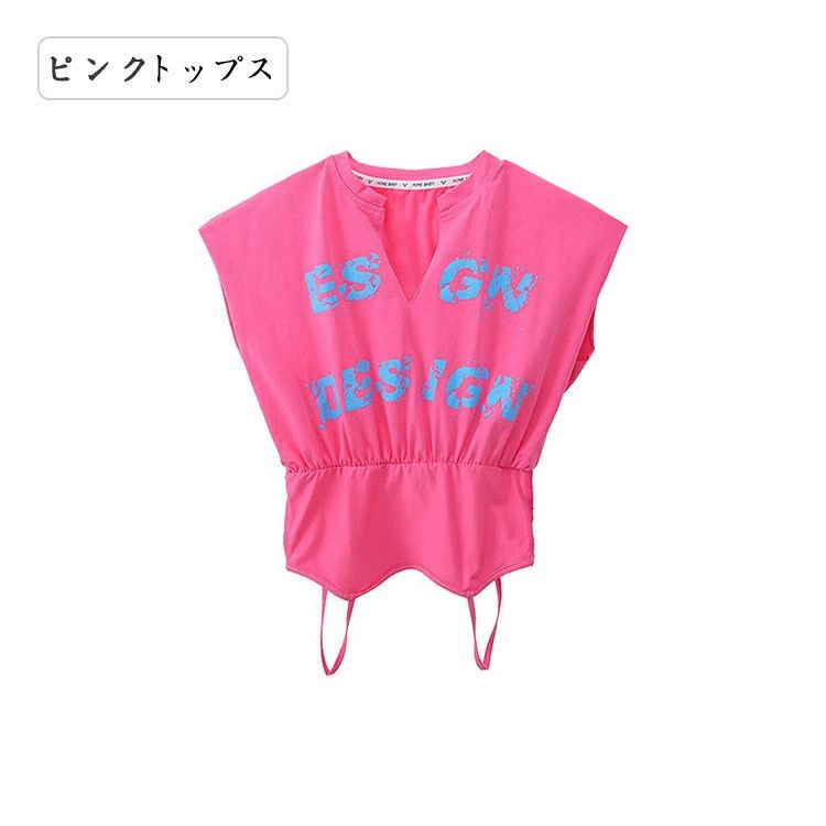 タンクトップレディースTシャツノースリーブUネックロゴプリント