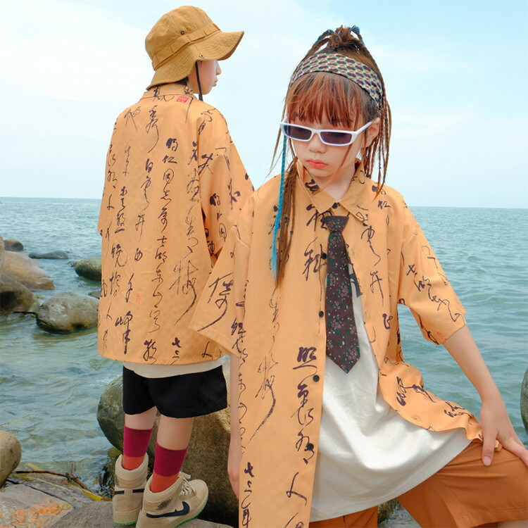 ベスト オレンジ 柄シャツ 総柄シャツ