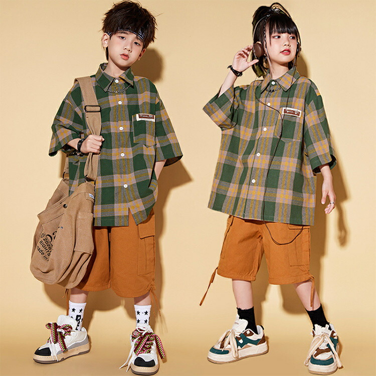 タータンチェック シャツ 土色 オレン