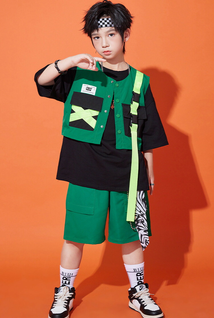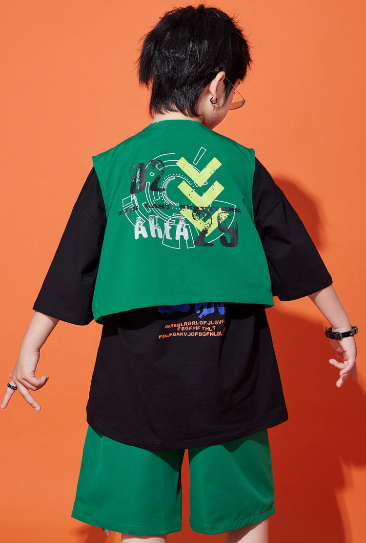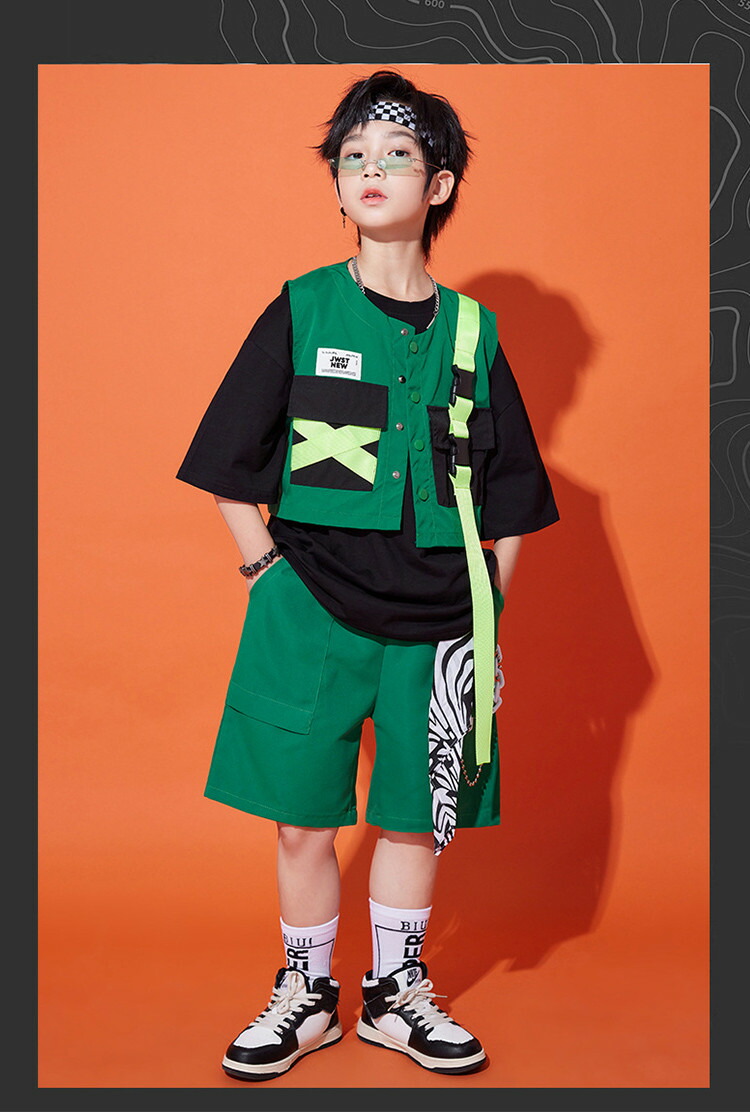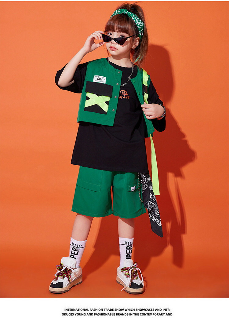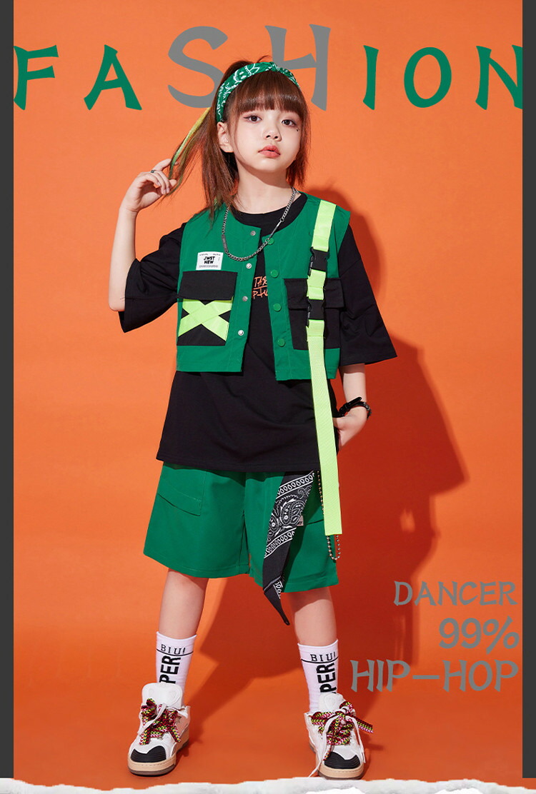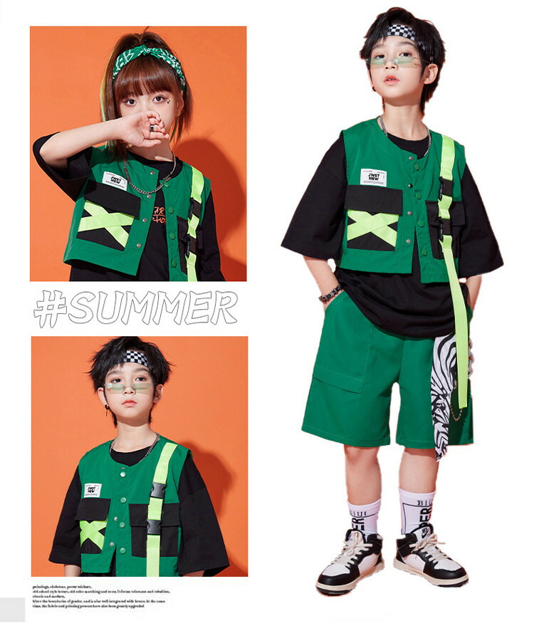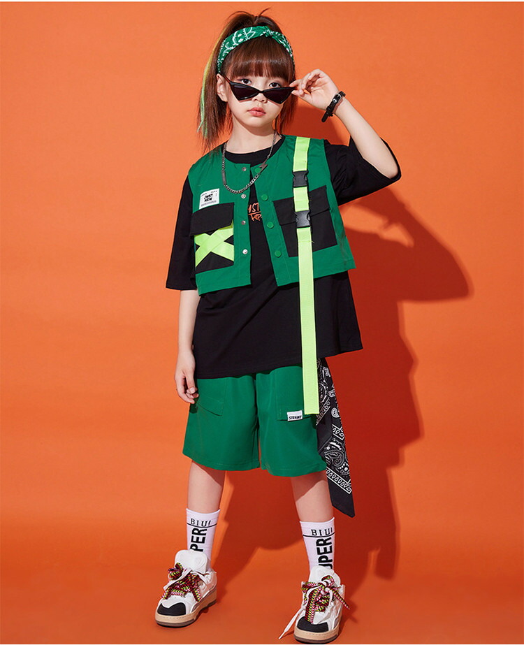 緑 ベスト キッズ ダンス衣装 半袖