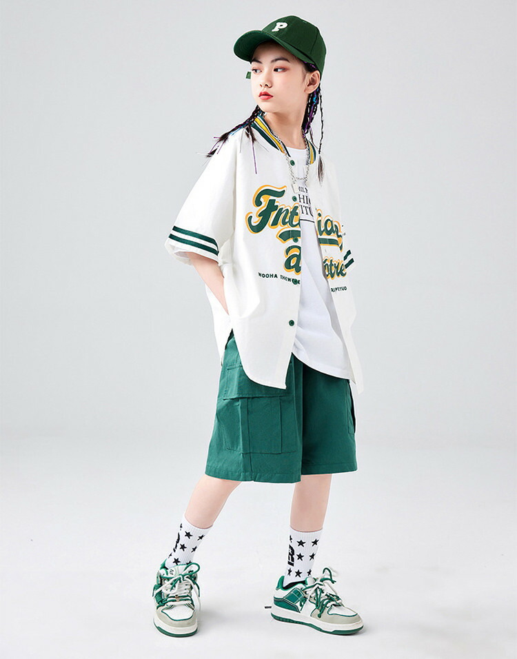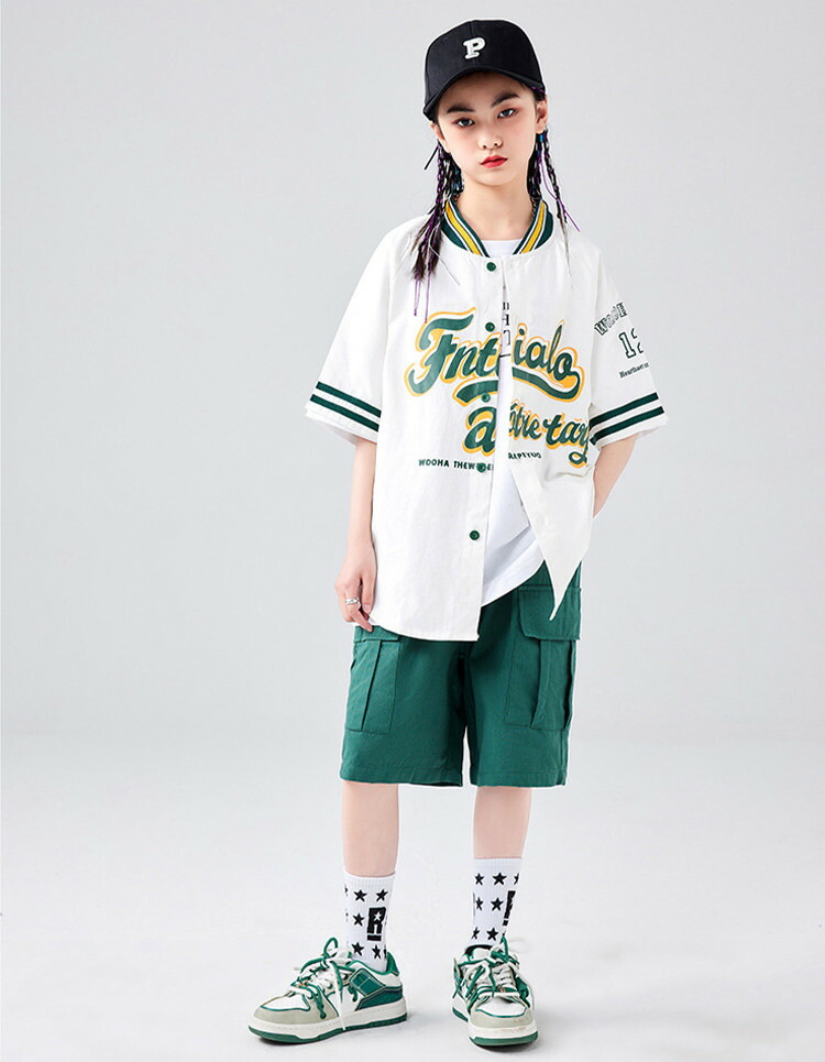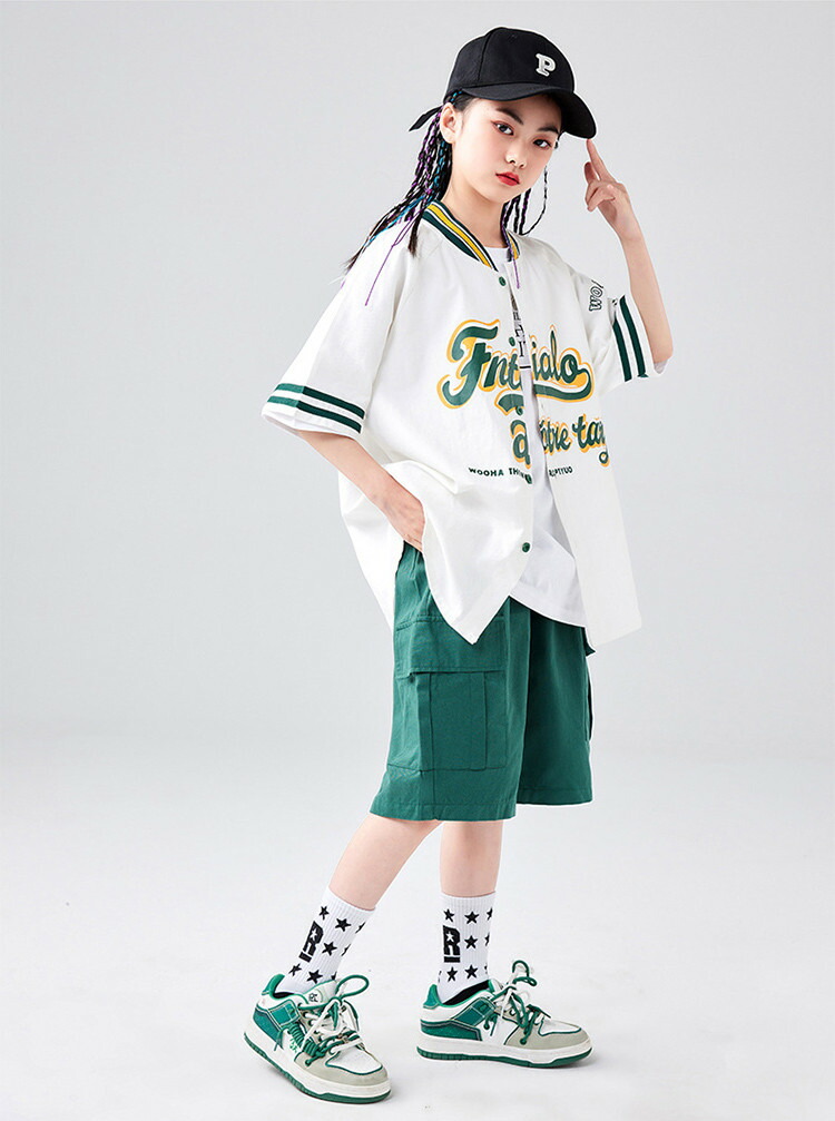 ベースボールシャツ 緑 グリーン 女の