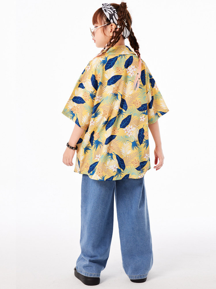 黄色 柄シャツ 総柄シャツ 花柄シャツ