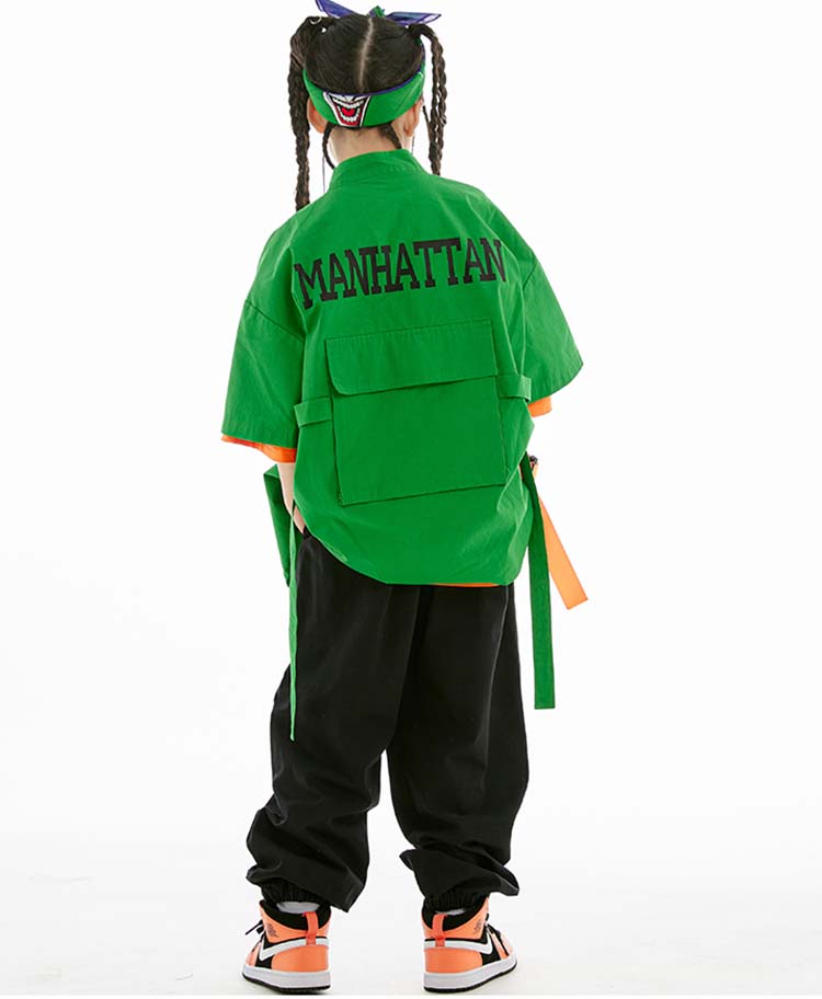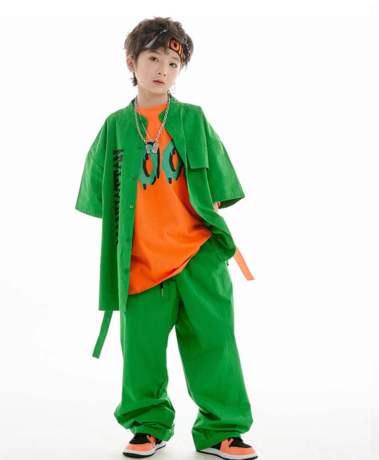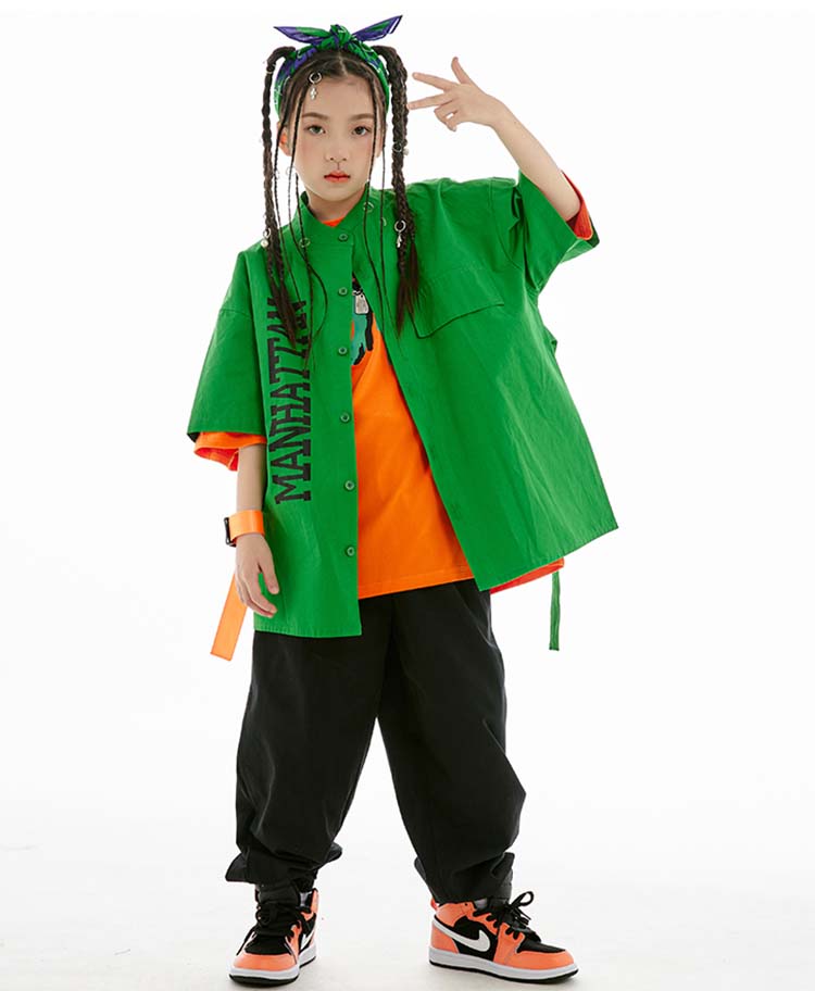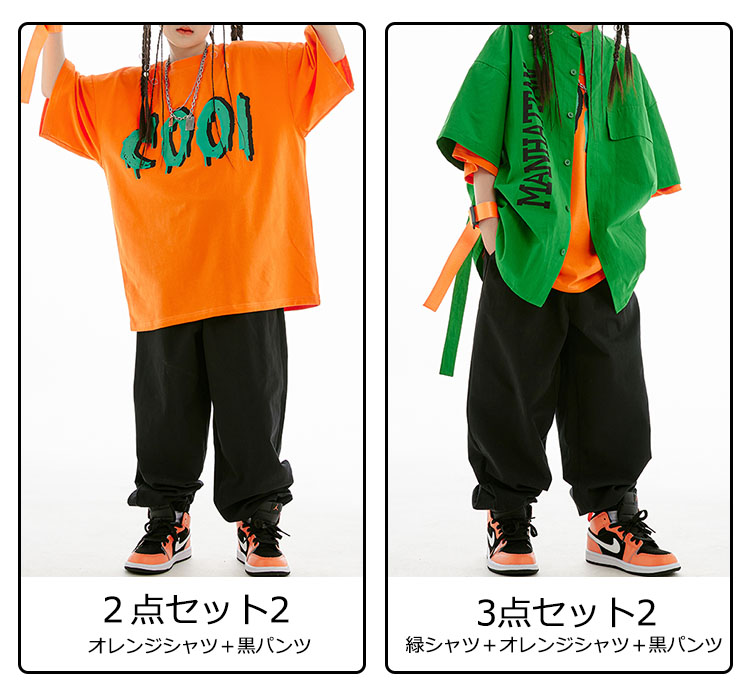 緑 黒 オレンジ キッズ ダンス 衣装