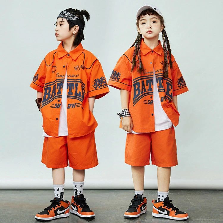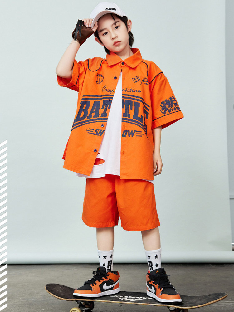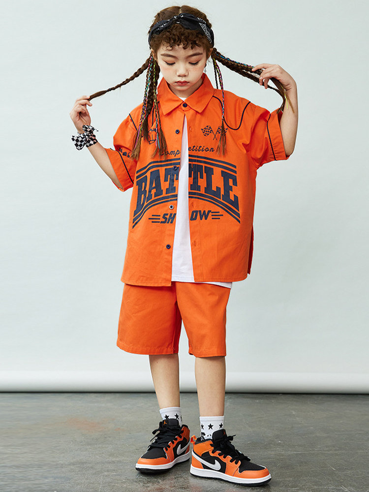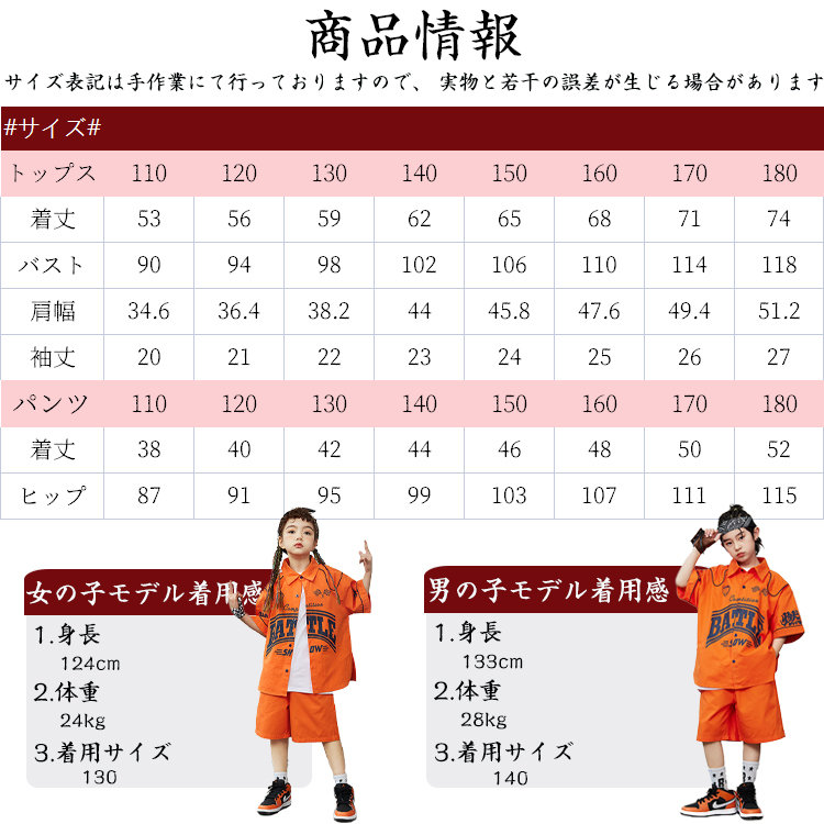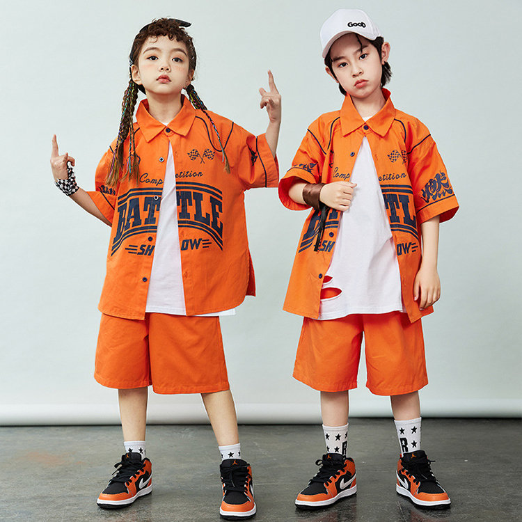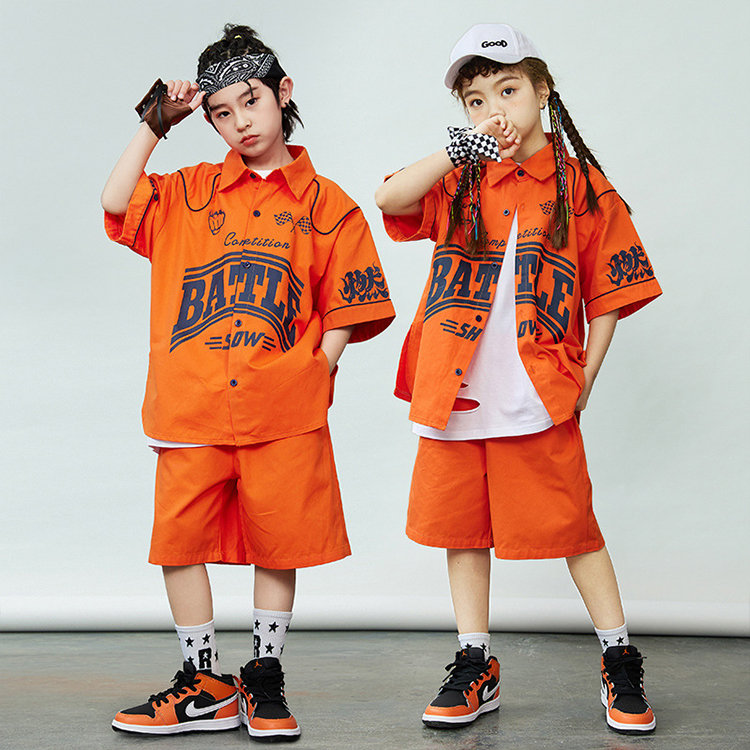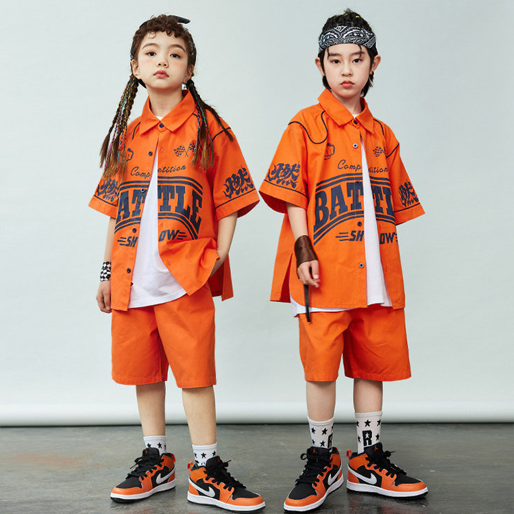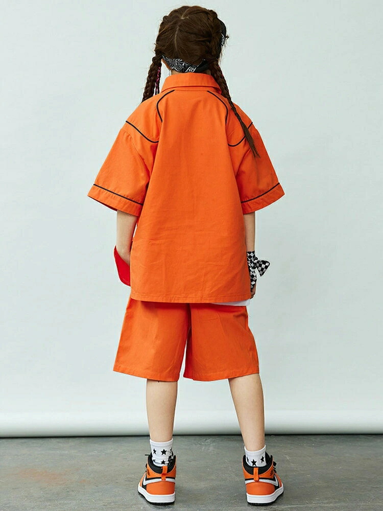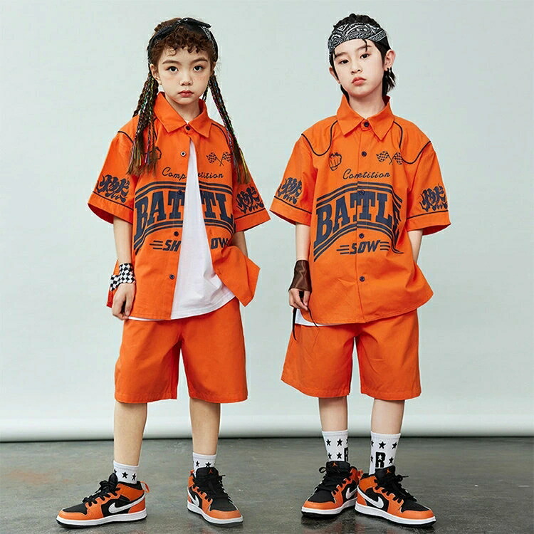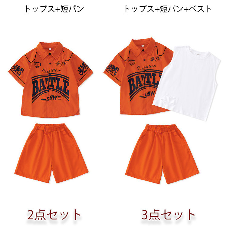 シャツ 橙色 キッズ ダンス衣装 セッ