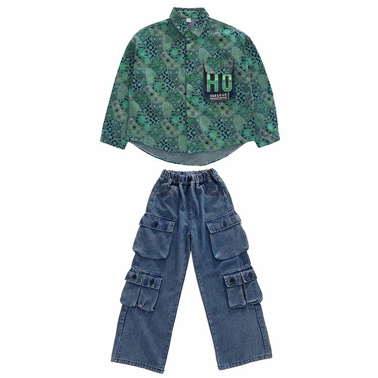 商品内容: 緑#トップス デニムパンツ トップス+パンツ