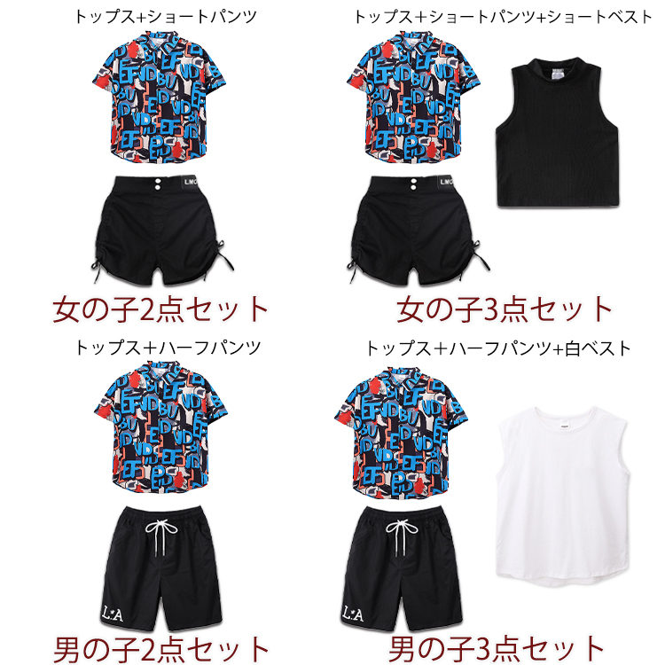 商品内容: 柄シャツのみ 女の子2点セット 男の子2点セット 女の子3点セット 男の子3点セット 黒ショートベストのみ 白ベストのみ ショートパンツのみ ハーフパンツのみ