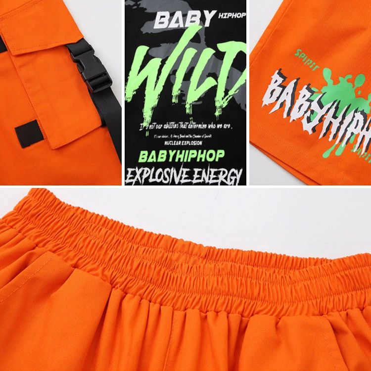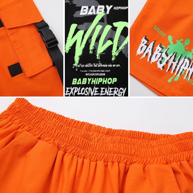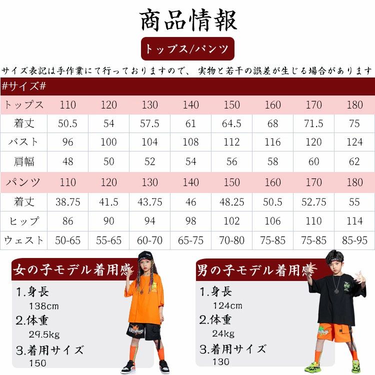 商品内容: 黒色トップスのみ 橙色トップスのみ 黒色短パンのみ 橙色短パンのみ 黒色トップス+短パン 橙色トップス+短パン