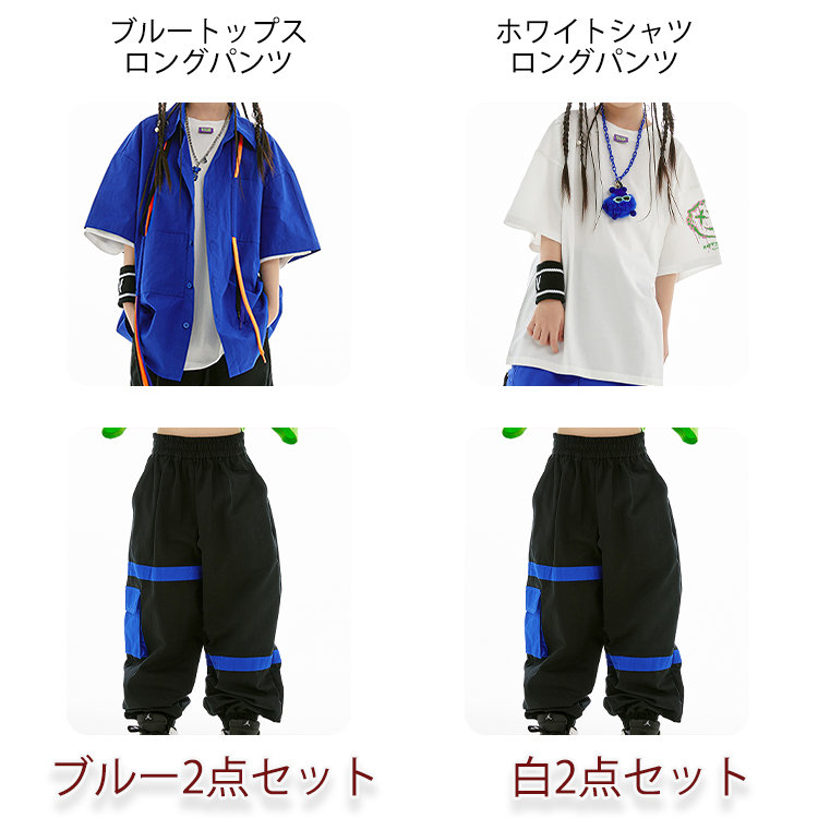 商品内容: 白Tシャツのみ 青色トップスのみ 黒パンツのみ 白2点セット 青色2点セット 3点セット
