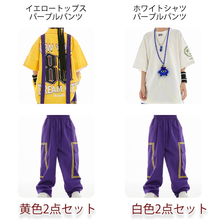 商品内容: 白Tシャツのみ 黄色トップスのみ パープルパンツのみ 白2点セット( 黄色2点セット 3点セット