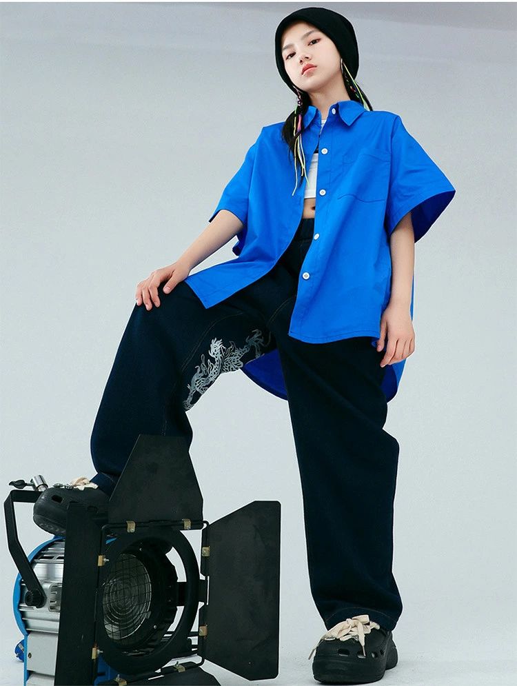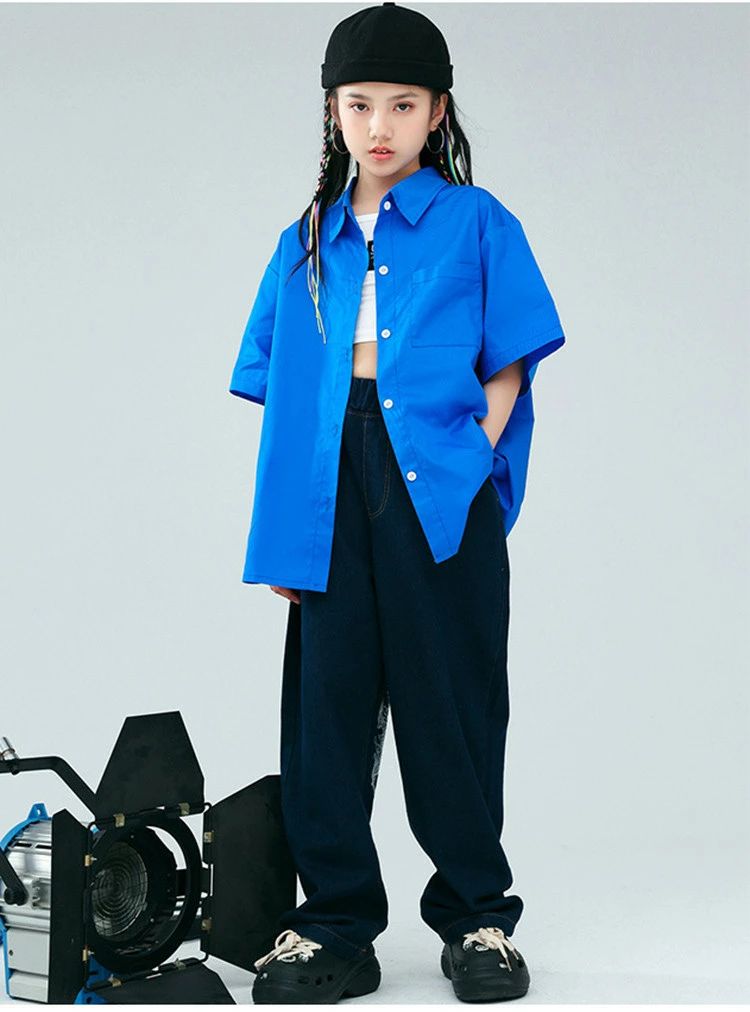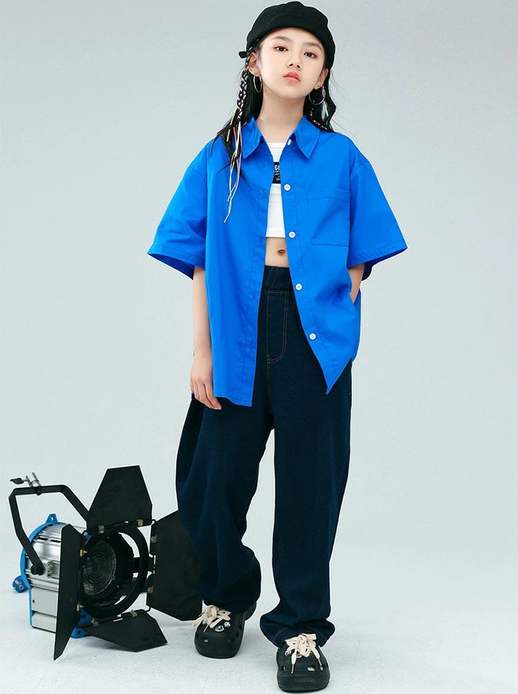 青 半袖 夏 キッズ ダンス衣装 トッ