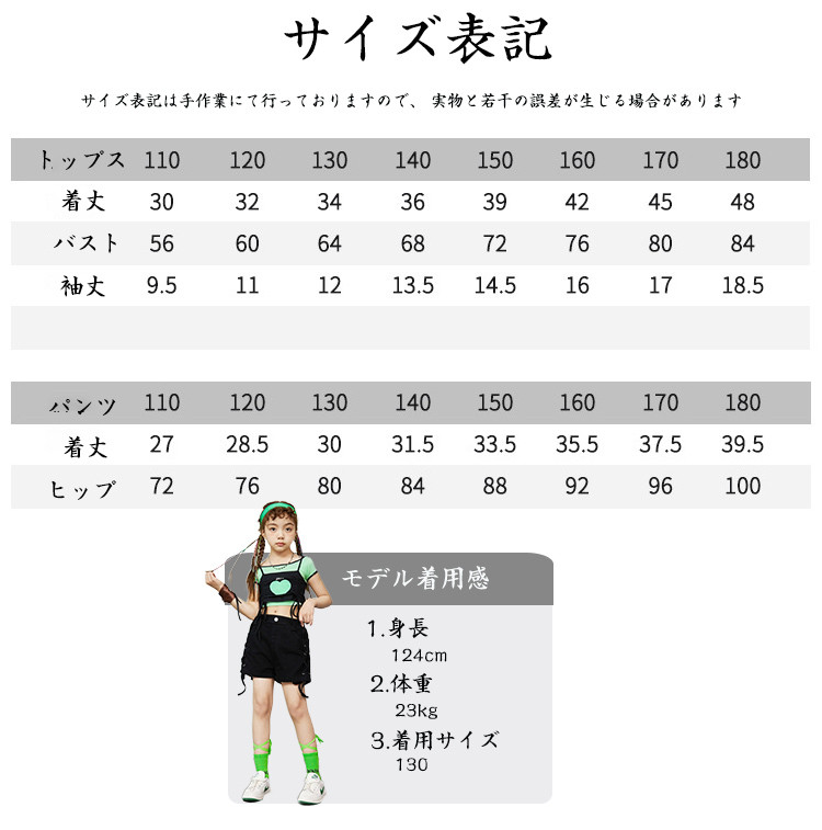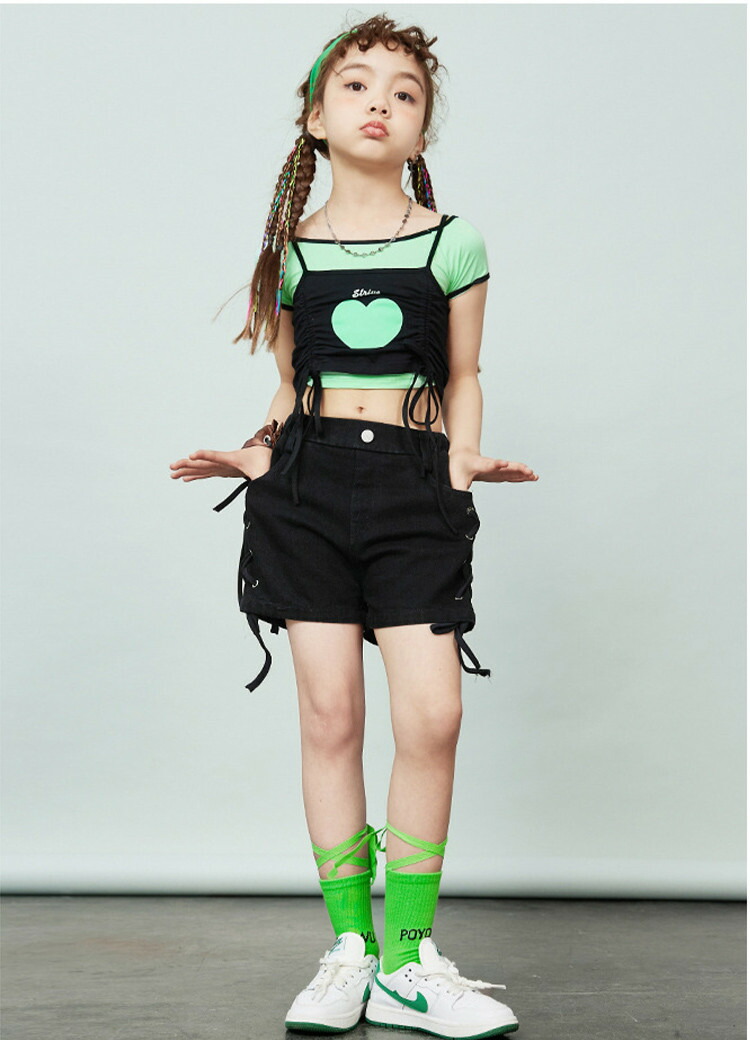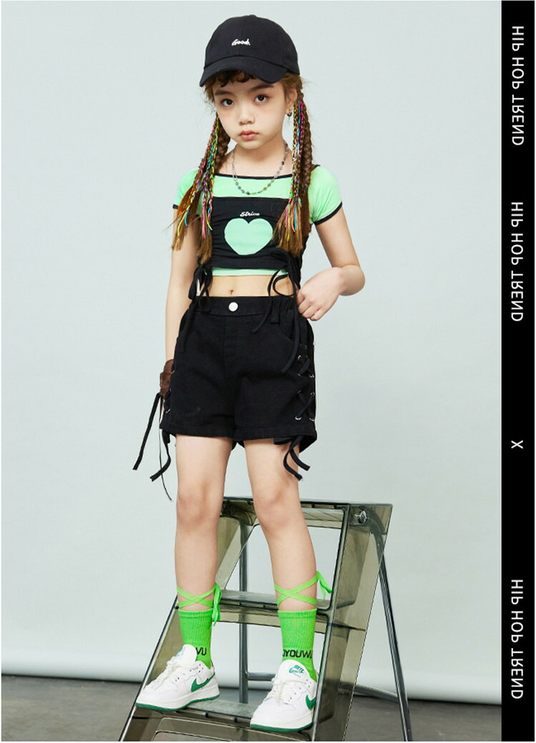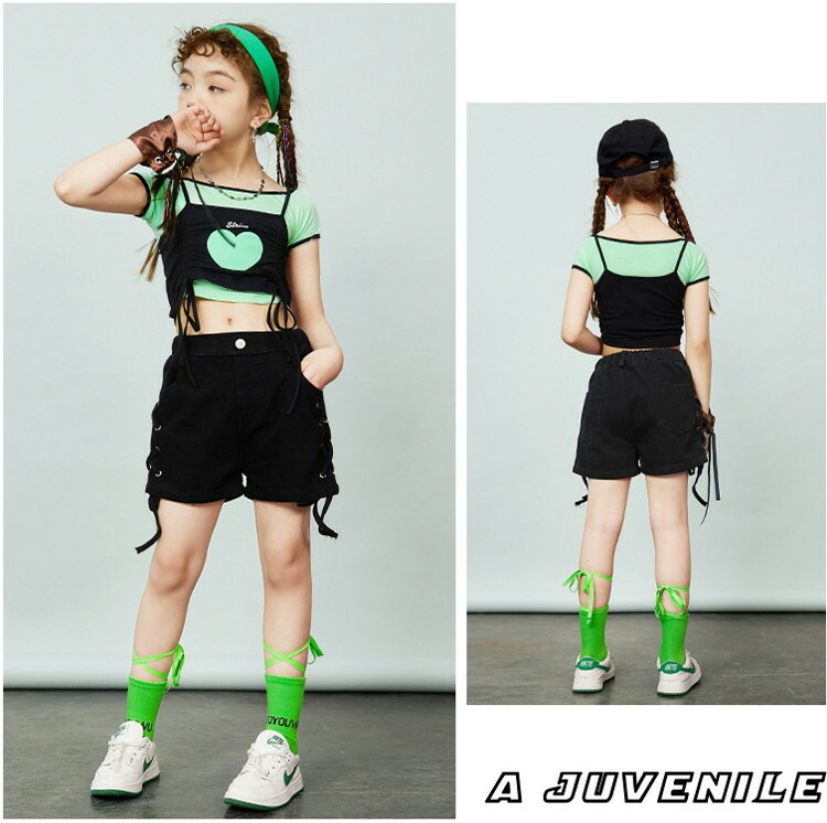 へそ出し 緑 黒 半袖 キッズ ダンス