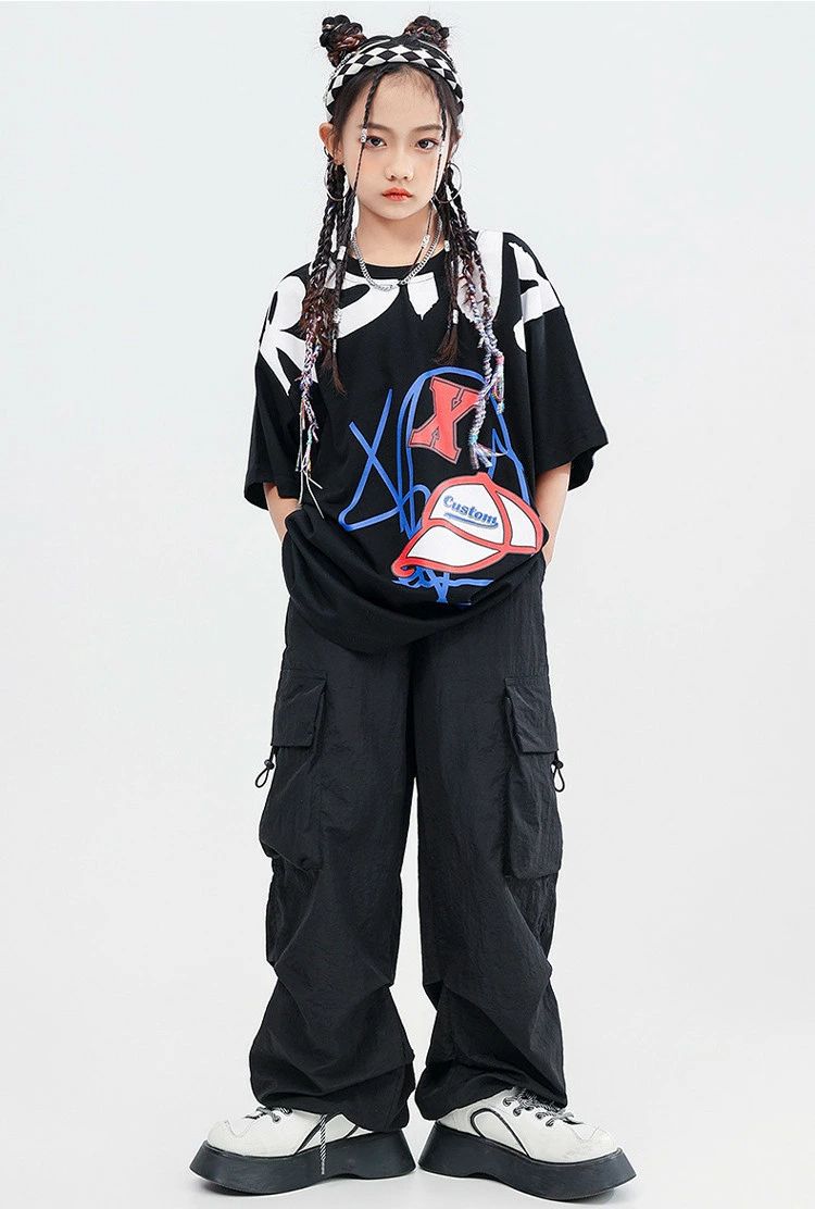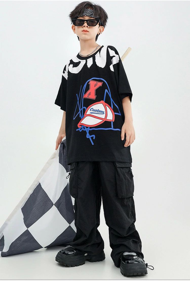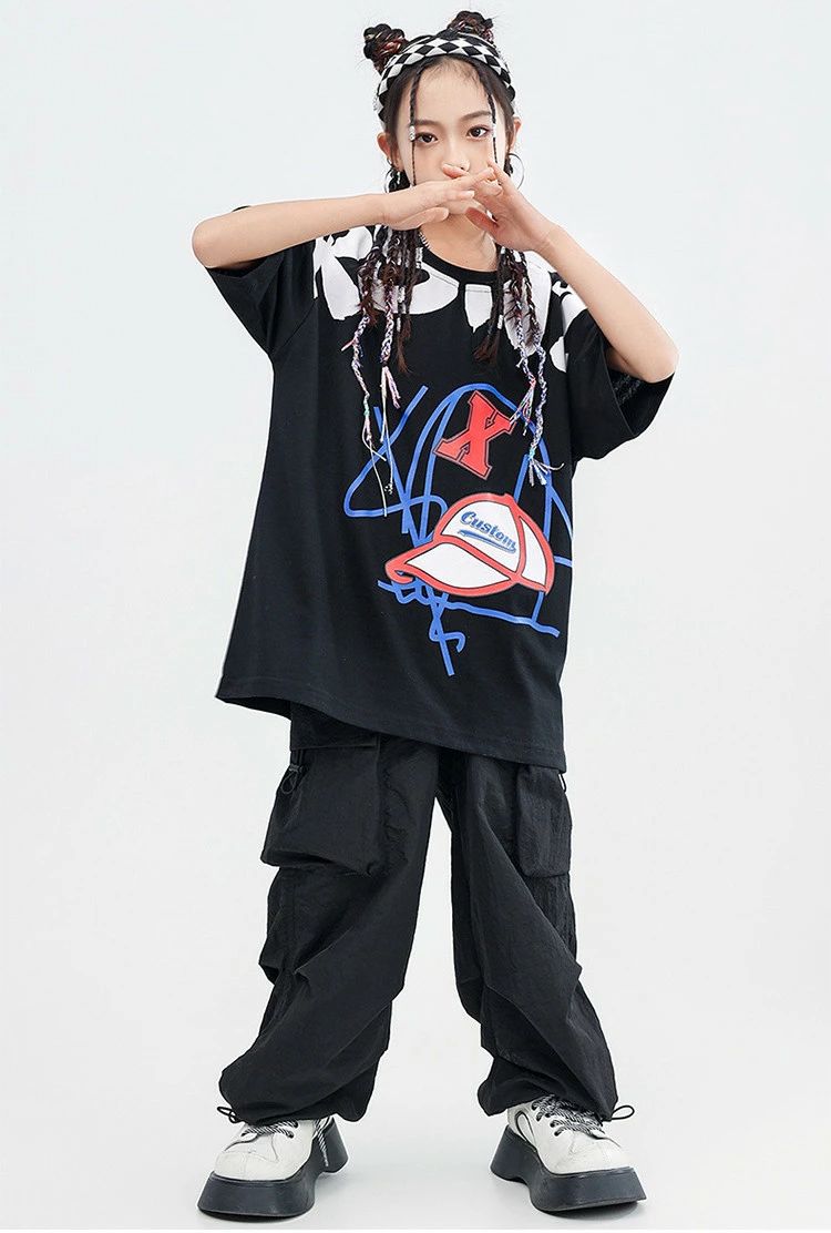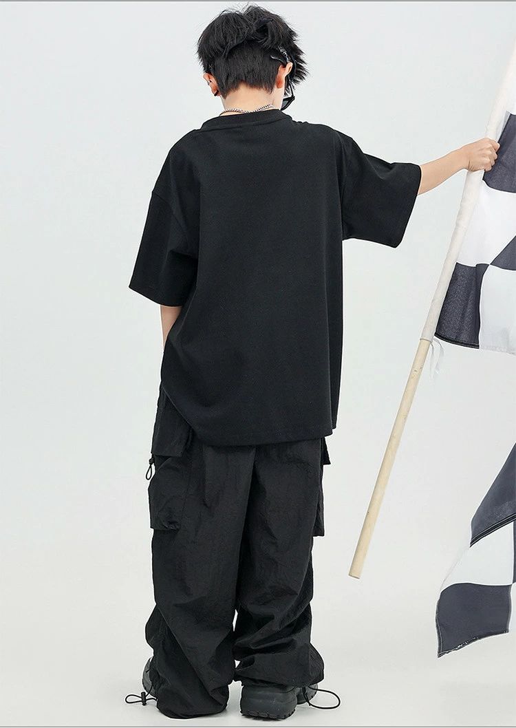 黒 ブラック カーゴパンツ 半袖 キッ