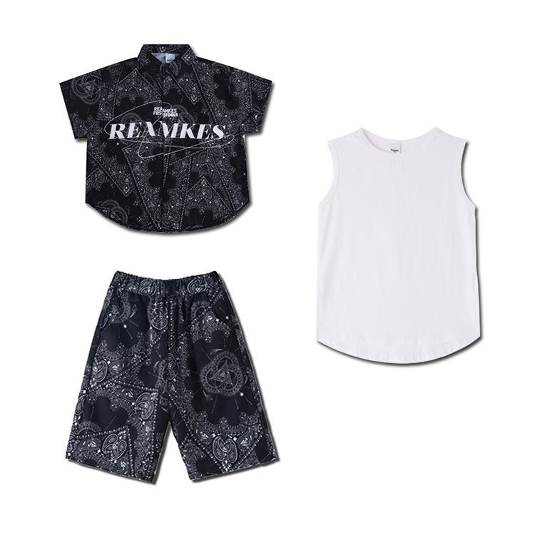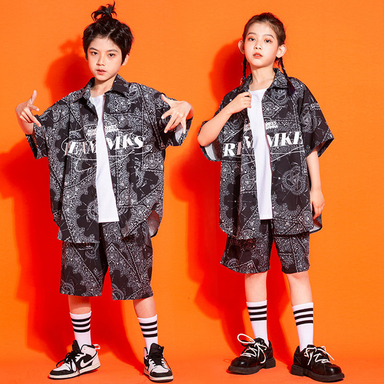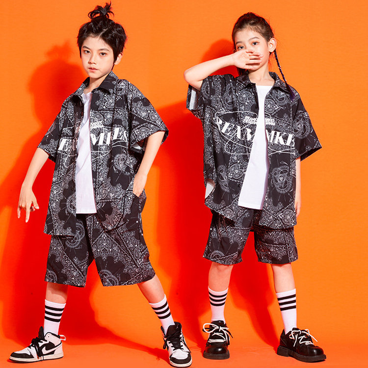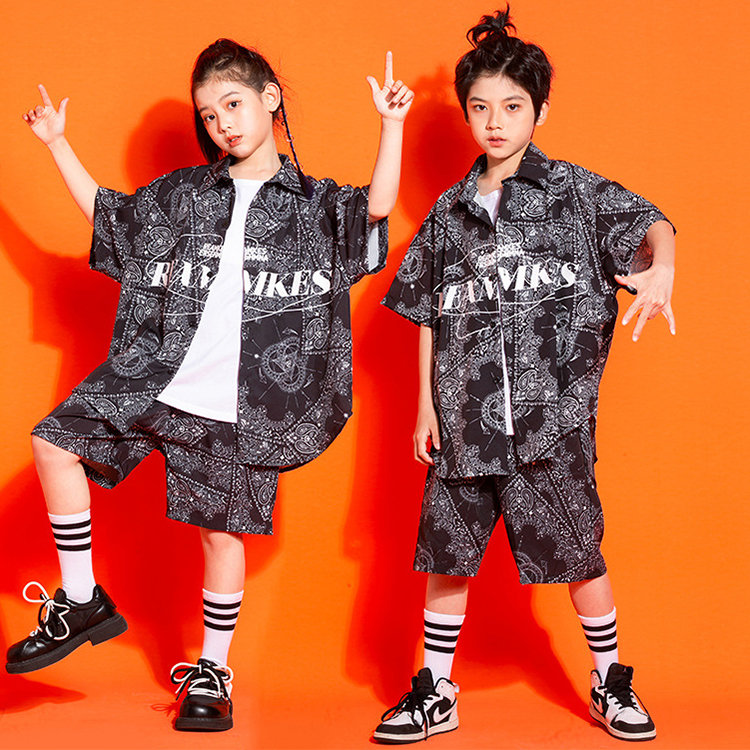 黒ペイズリー柄 キッズ ダンス衣装 セ