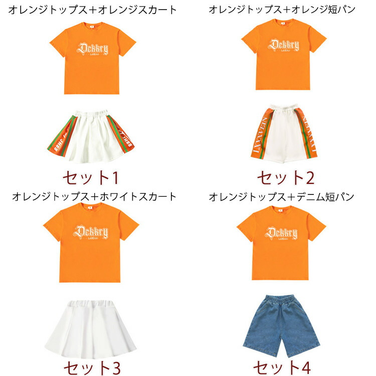 商品内容: オレンジトップスのみ オレンジ短パンのみ オレンジスカートのみ ホワイトスカートのみ デニム短パン セット1 セット2 セット3 セット4