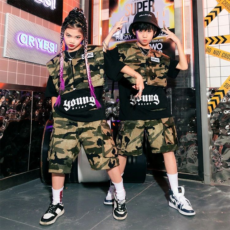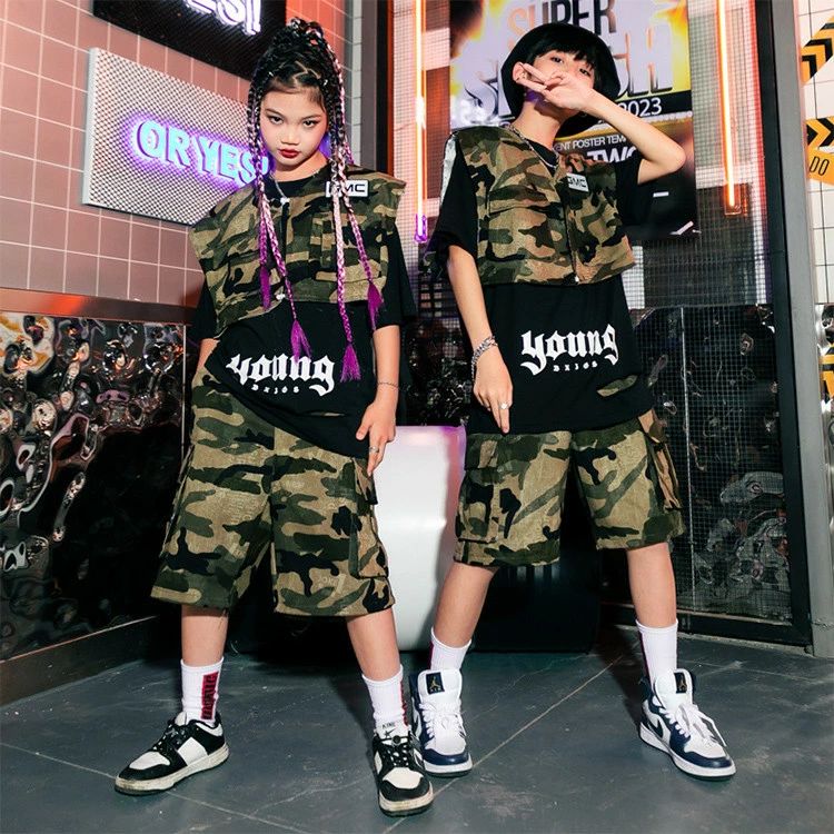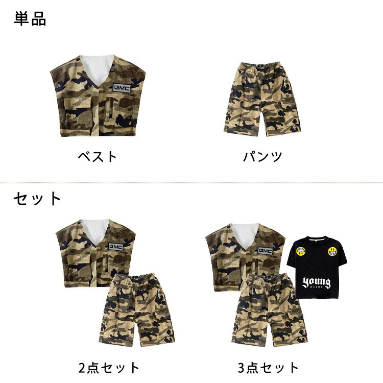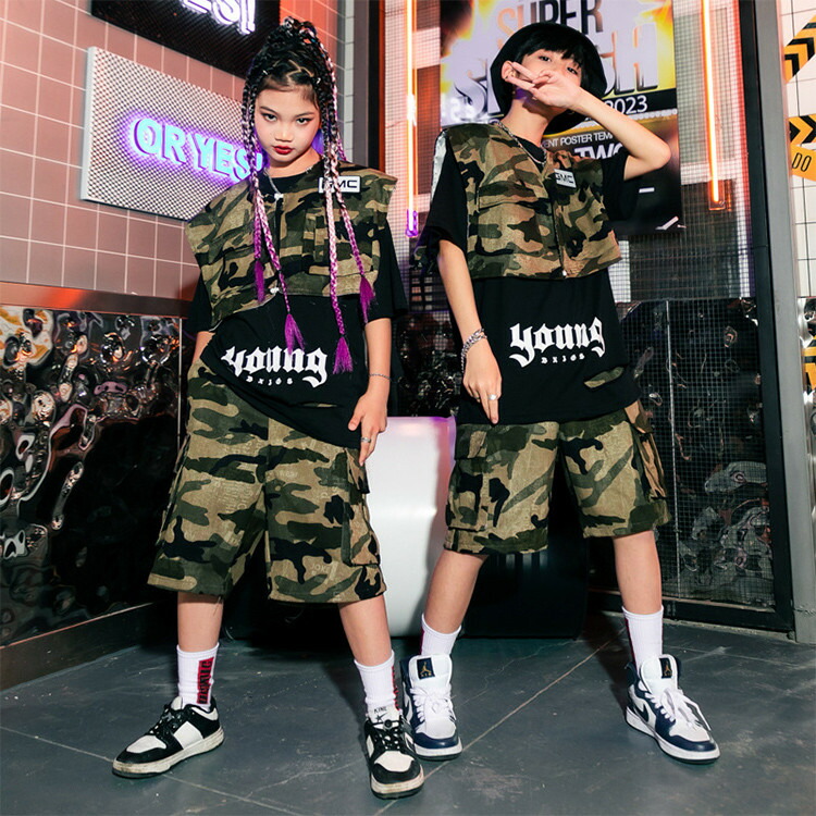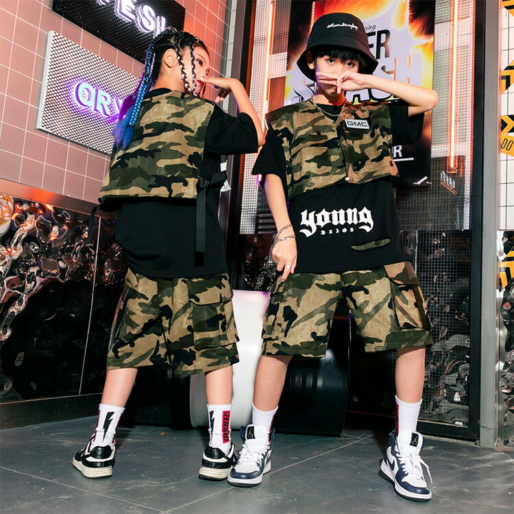 迷彩 ベスト 半袖 夏 キッズ ダンス