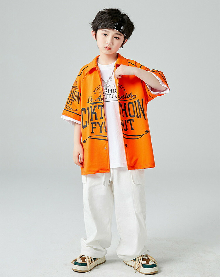 オレンジ カーゴパンツ 半袖 キッズ