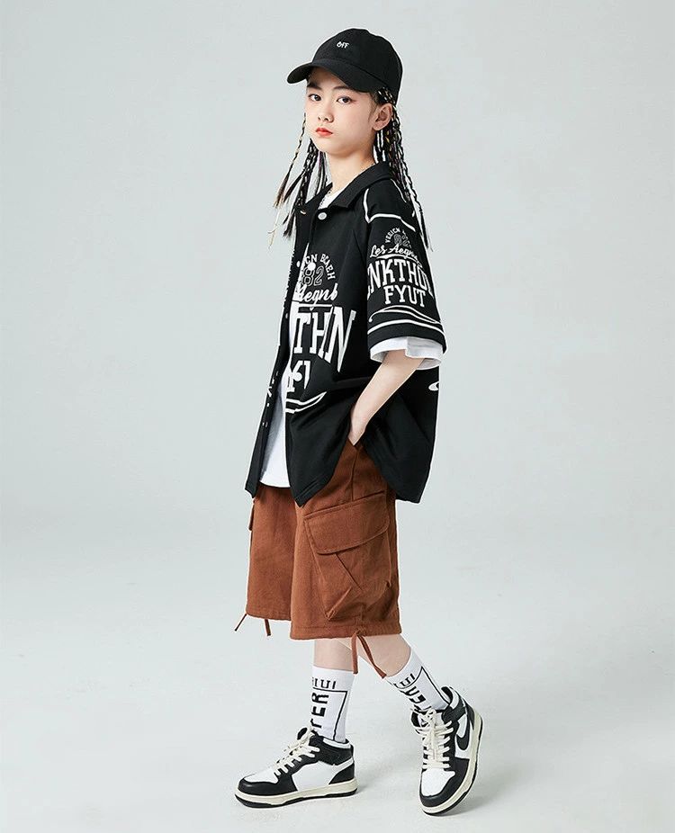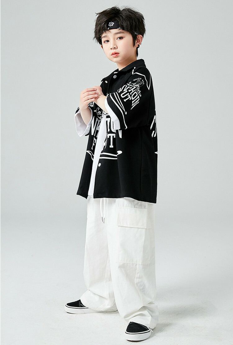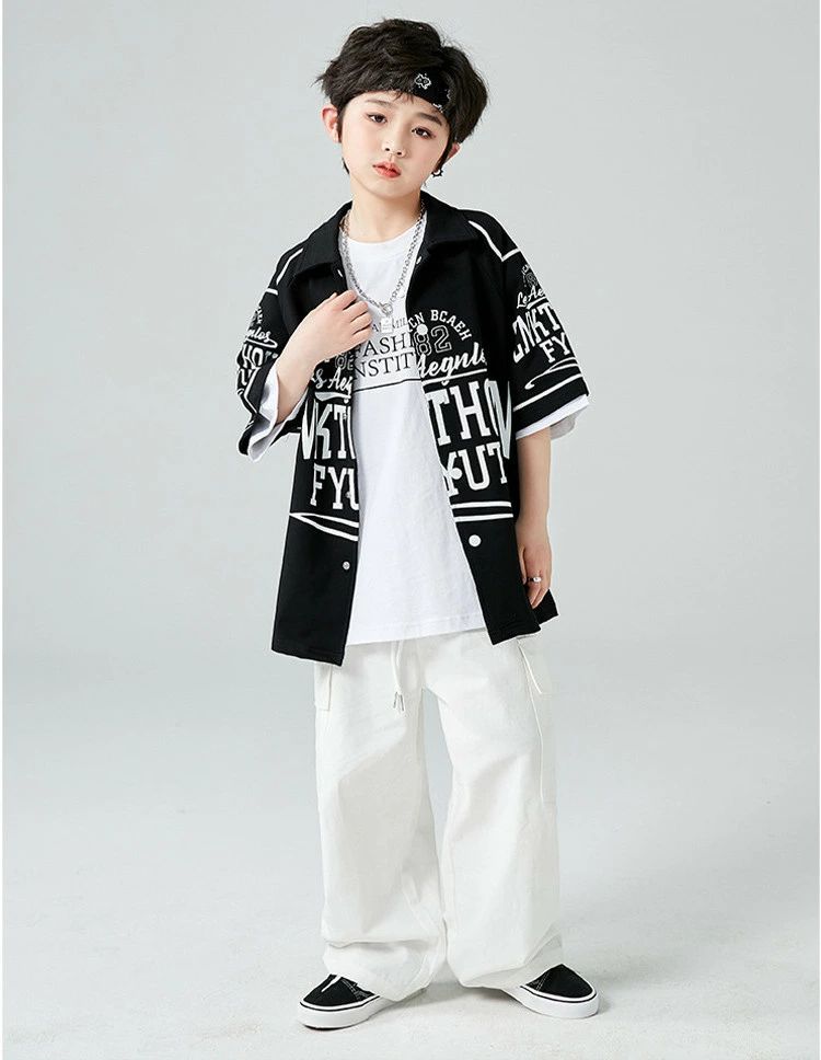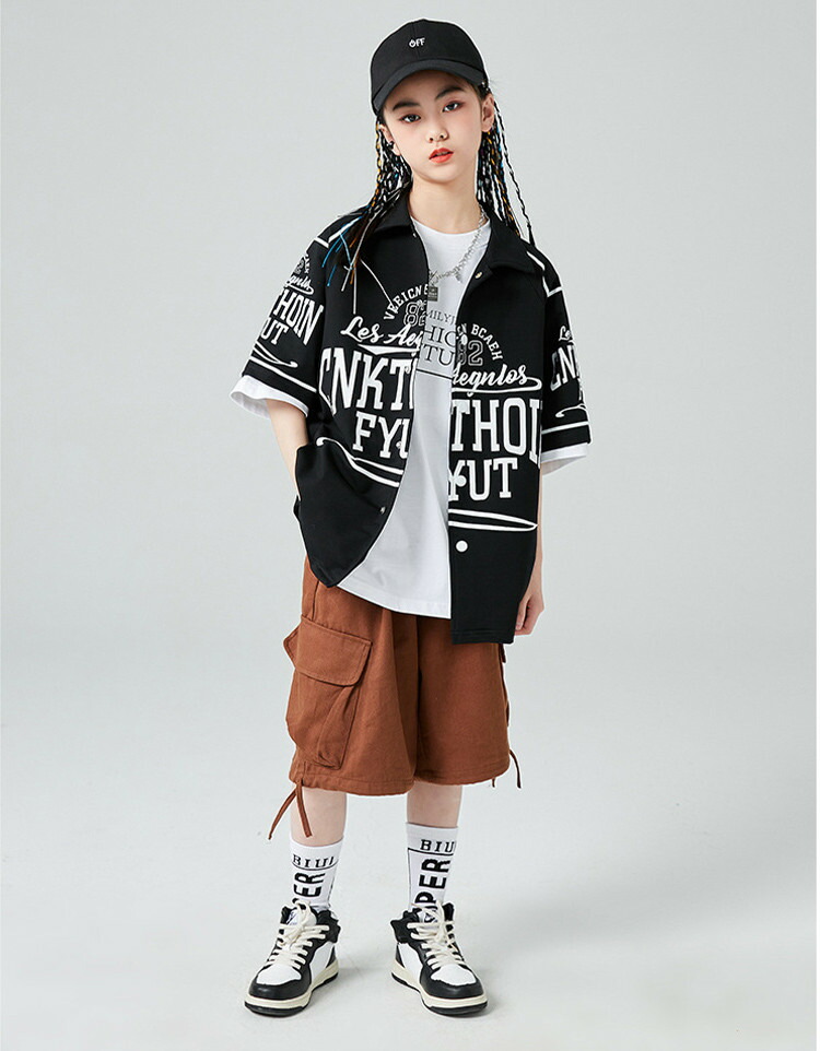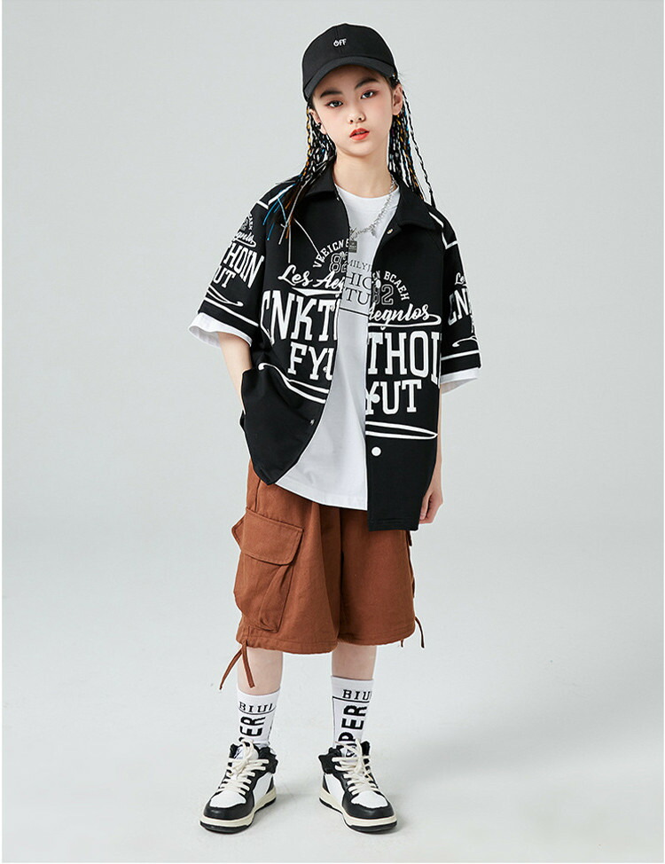 カーゴパンツ 黒 白 半袖 キッズ ダ
