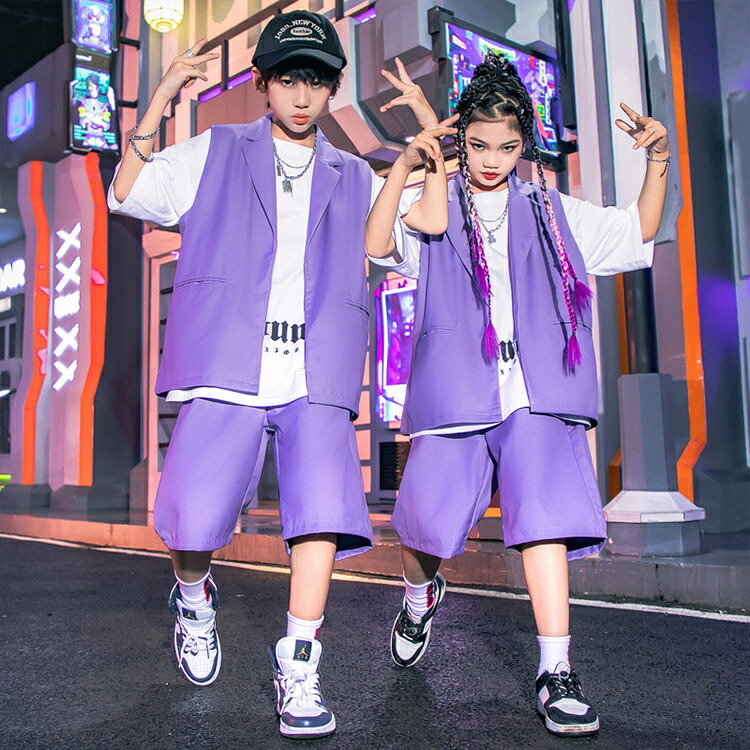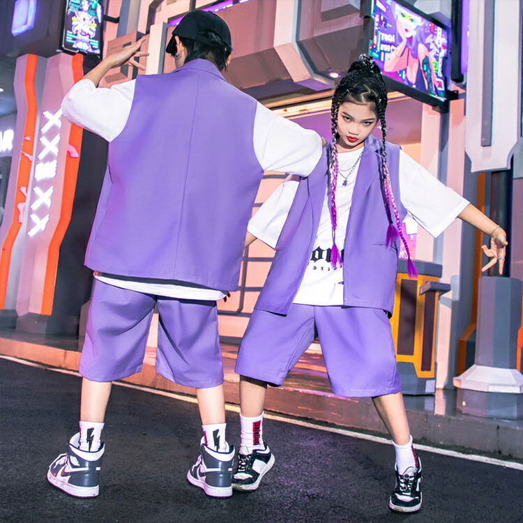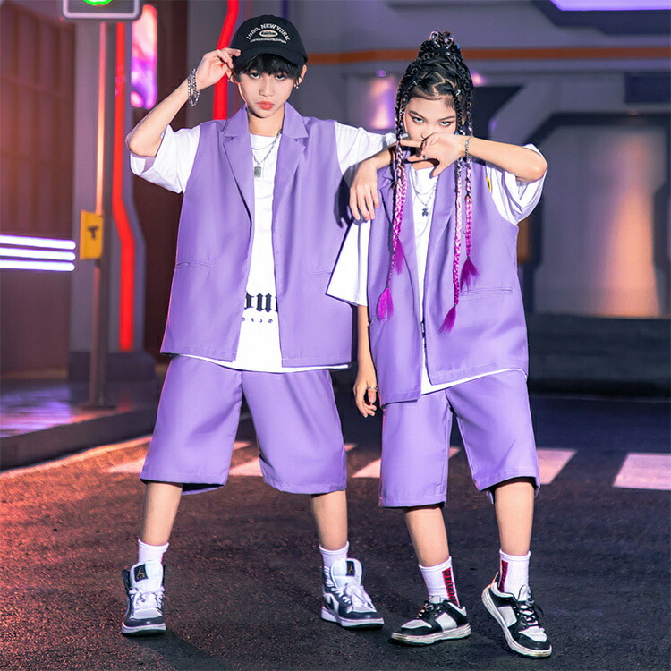 パープル キッズ ダンス衣装 セットア
